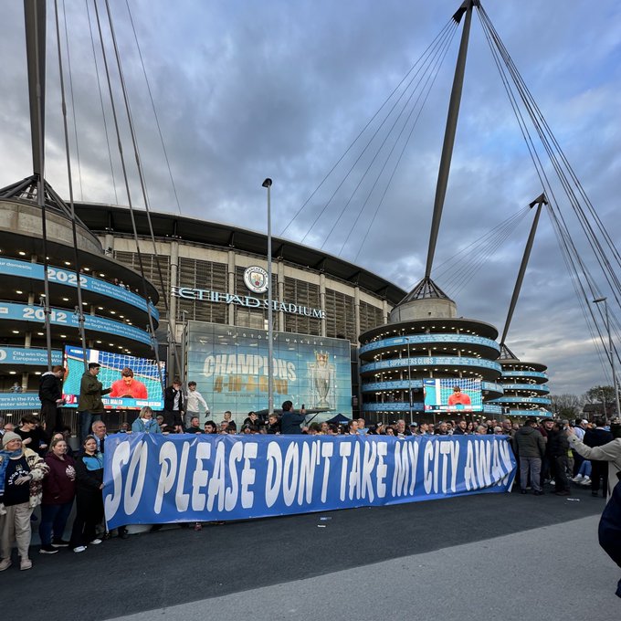 جماهير مانشستر سيتي تحتج ضد ارتفاع أسعار التذاكر، حيث بلغ سعر التذكرة الأرخص للبالغين 71 جنيهًا إسترلينيًا وللأطفال 40 جنيهًا إسترلينيًا