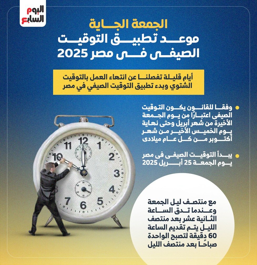 الجمعة الجاية. موعد تطبيق التوقيت الصيفى فى مصر 2025
