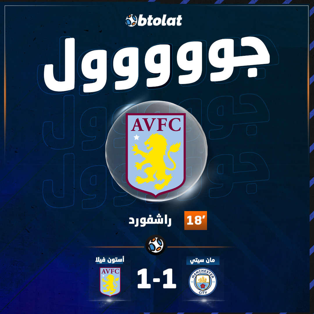 جوووووووووووول! راشفورد يعدل النتيجة ل أستون فيلا في شباك السيتي من ركلة جزاءد18