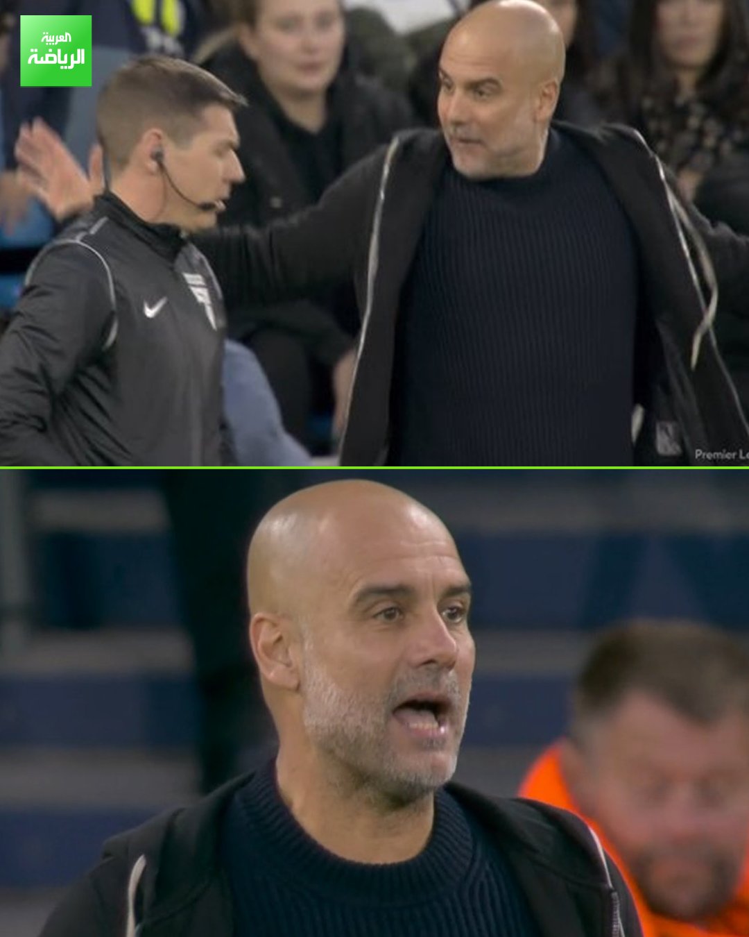 غضب بيب غوارديولا بعد احتساب ركلة جزاء لصالح أستون فيلا. المدرب الإسباني تلقى بطاقة صفراء _رياضة