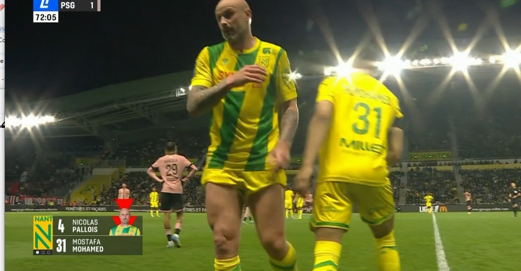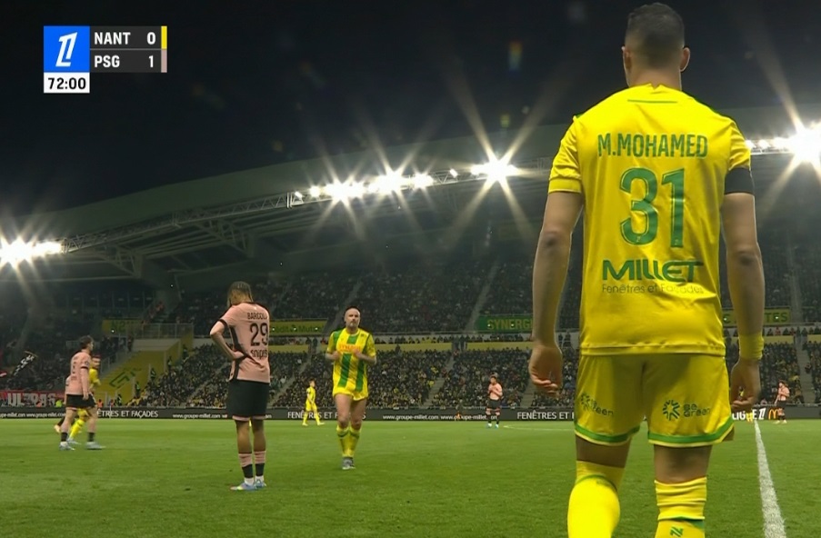 مصطفى محمد يشارك في الدقيقة 74 خلال مباراة نانت وباريس سان جيرمان في الدوري الفرنسي