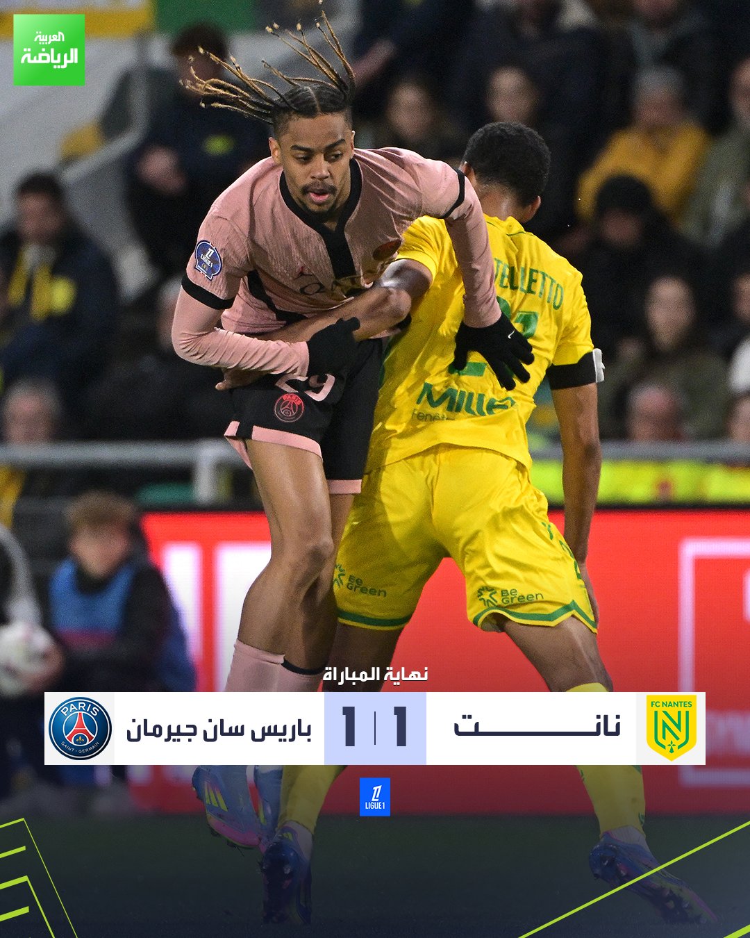 نانت يتعادل مع باريس سان جيرمان بهدف لمثله. نانت 1 (أوغوستو) باريس سان جيرمان 1 (فيتينيا) الدوري الفرنسي لا بوجوار _رياضة