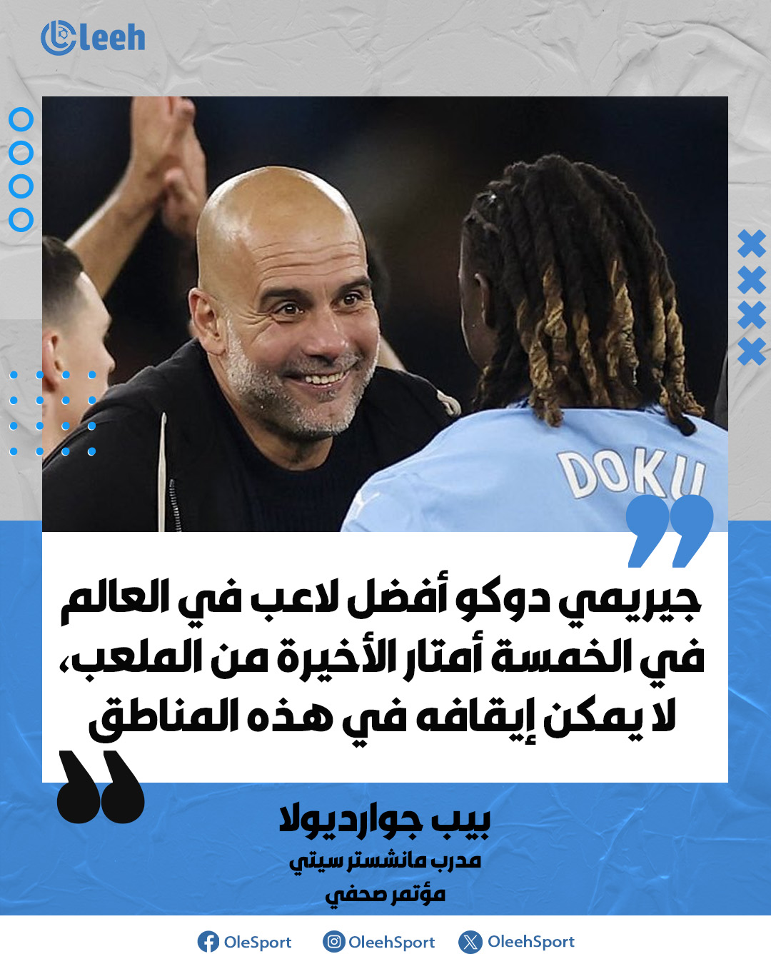 جوارديولا يتغنى بجيريمي دوكو بعد التمريرة الحاسمة الرائعة لهدف الفوز أمام أستون فيلا