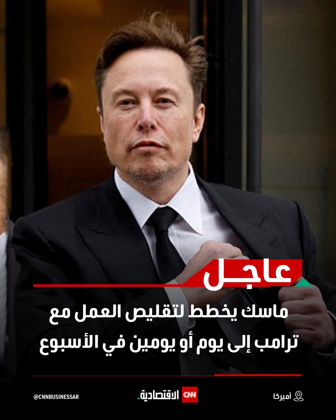 عاجل| الرئيس التنفيذي لشركة تسلا إيلون ماسك يقول إنه سيقلص العمل الحكومي بدءاً من مايو المقبل #العالم_بلغة_الأعمال