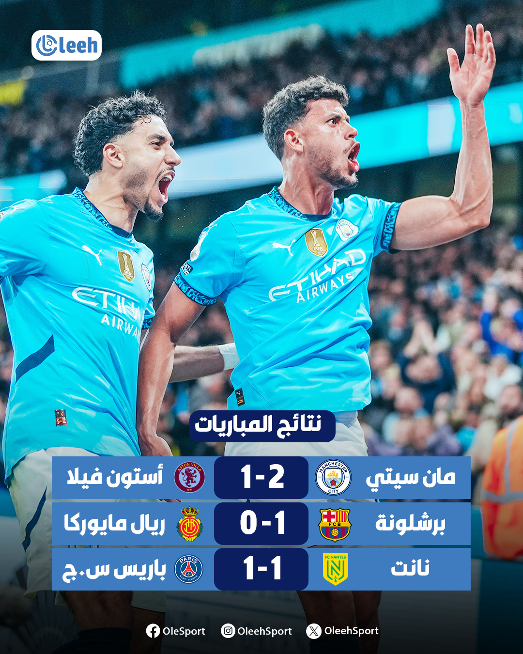 انتصارات مانشستر سيتي مستمرة في الدوري الإنجليزي وبرشلونة في الليجا.. وسلسلة اللا هزيمة لباريس سان جيرمان مستمرة في الدوري الفرنسي.. إليكم نتائج أهم مباريات الثلاثاء في الدوريات الأوروبية الكبرى