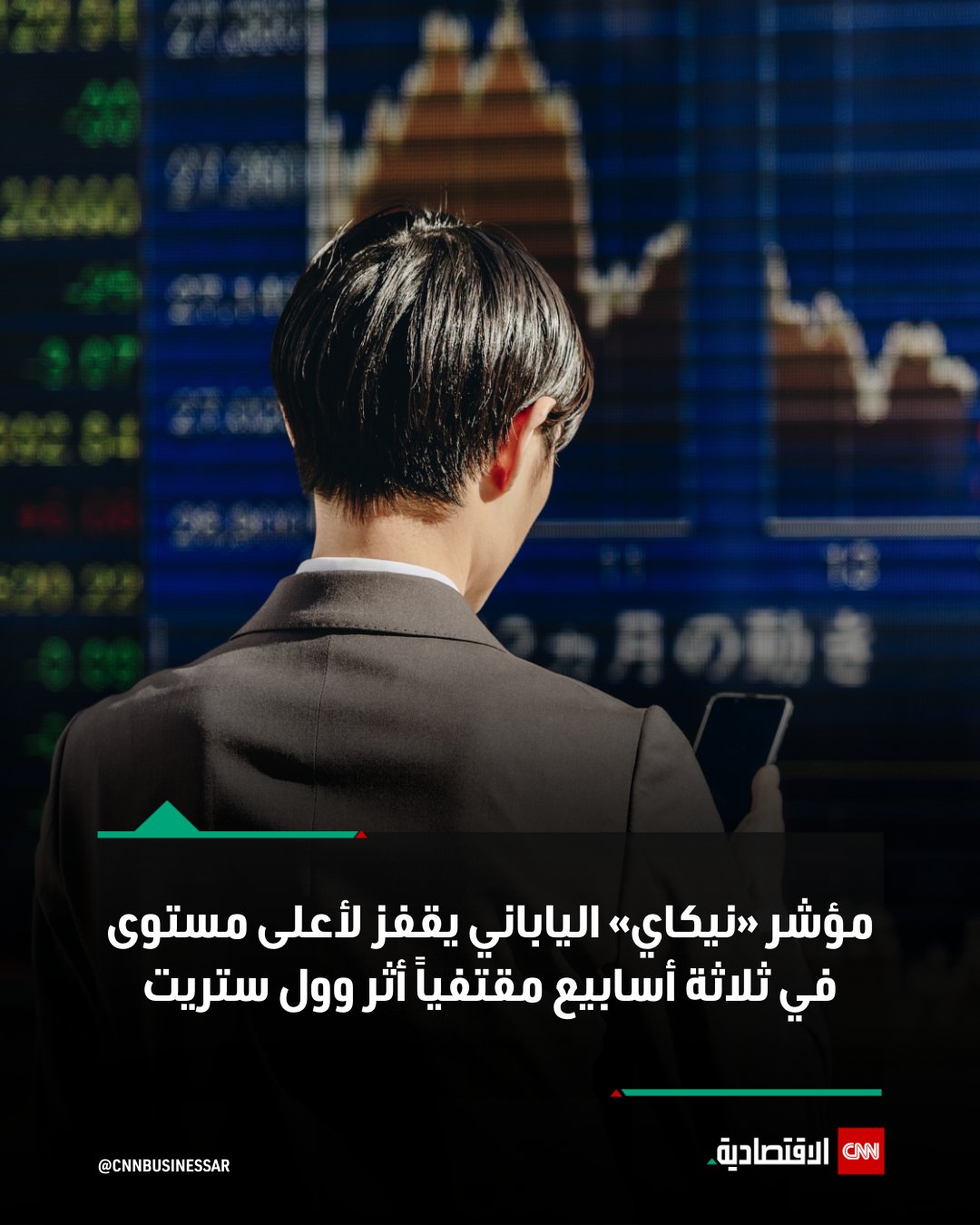 ارتفع متوسط مؤشر «نيكاي» الياباني إلى أعلى مستوى له في ثلاثة أسابيع، يوم الأربعاء، بعدما دفع تعافي وول ستريت القوي المستثمرين إلى شراء أسهم التكنولوجيا اليابانية الثقيلة.. وسجّل مؤشر «نيكاي» ذروته عند 35,142.12 نقطة، وهو أعلى مستوى له منذ 2 نيسان أبريل، قبل أن ينهي الجلسة الصباحية مرتفعاً بنسبة 1.72%عند 34,808.8 نقطة.. أما المؤشر الأوسع نطاقًا «توبكس» فارتفع بنسبة 1.74% ليصل إلى 2,576.2 نقطة. #العالم_بلغة_الأعمال