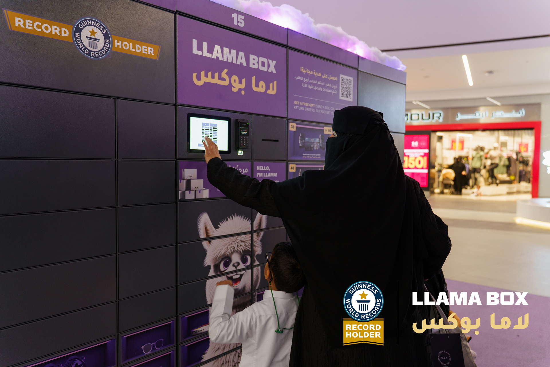رسميًا، حققت شركة لاما بوكس، المشغّلة لشبكة الخزائن الذكية المفتوحة في المملكة العربية السعودية، رقمًا قياسيًا عالميًا، من خلال إنشاء أكبر خزانة طرود في العالم - والتي تحتوي على 2072 حجرة.