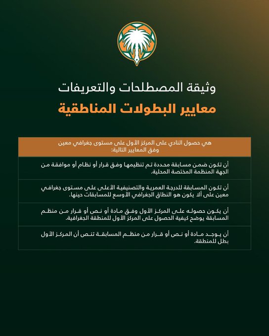 معايير اعتماد بطولات المناطق المصادق عليها من الجمعية العمومية لمشروع توثيق تاريخ كرة القدم السعودية.