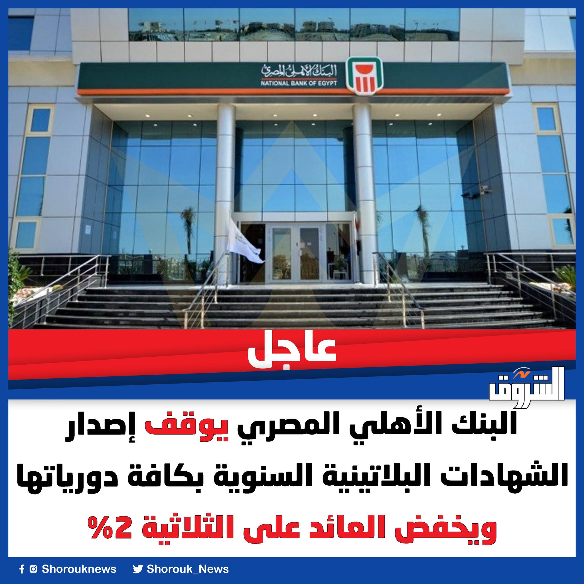 البنك الأهلي المصري يوقف إصدار الشهادات البلاتينية السنوية بكافة دورياتها ويخفض العائد على الثلاثية 2%