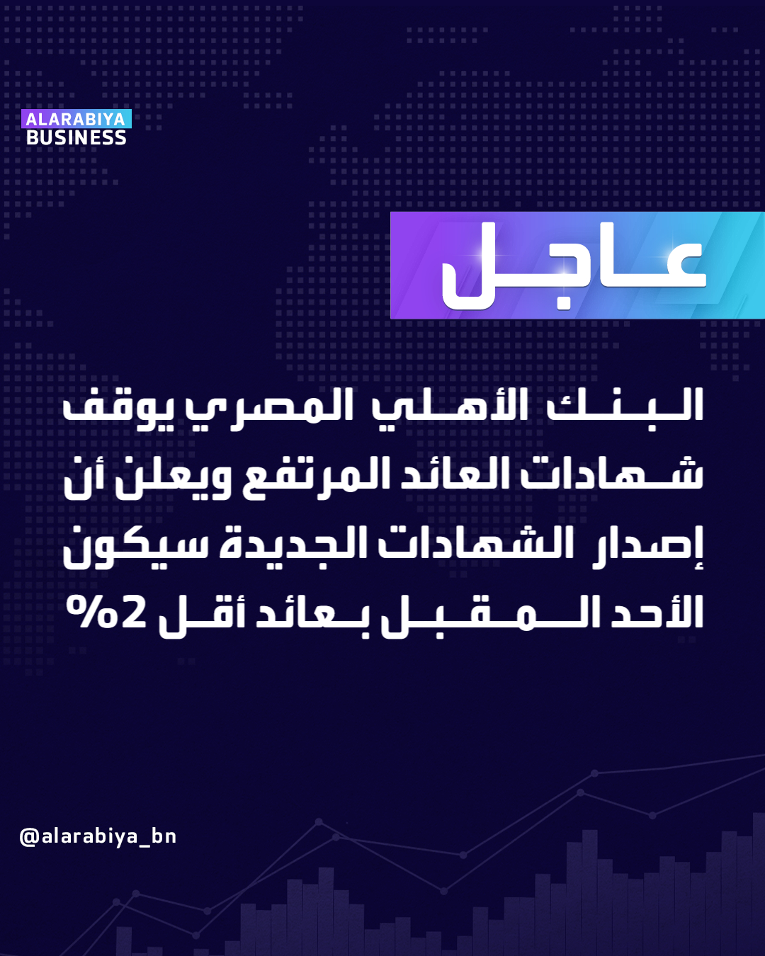 عاجل| البنك الأهلي المصري يوقف شهادات العائد المرتفع ويعلن أن إصدار الشهادات الجديدة سيكون الأحد المقبل بعائد أقل ب 2% _Business