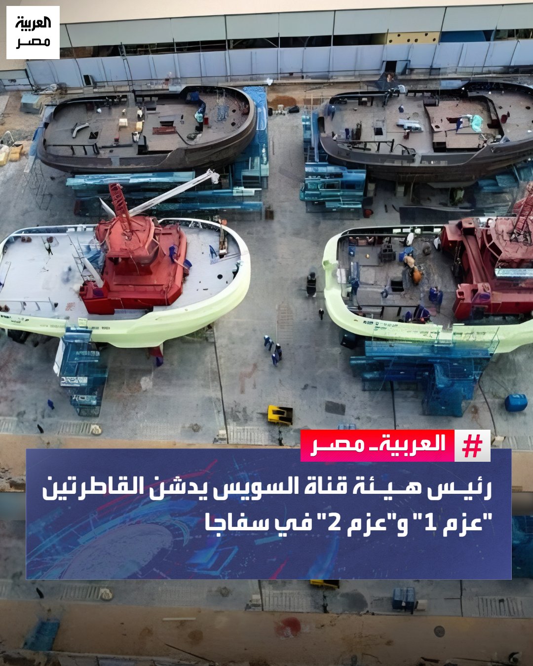 يدشن الفريق أسامة ربيع، رئيس هيئة قناة السويس، ظهر اليوم بمدينة سفاجا، أول إنتاج لترسانة جنوب البحر الأحمر من القاطرات البحرية، بإطلاق القاطرتين "عزم 1" و"عزم 2"، في خطوة نوعية لتعزيز القدرات البحرية المصرية.. تأتي هذه الخطوة ضمن عقد شراكة بين هيئة قناة السويس وشركة ترسانة جنوب البحر الأحمر، لبناء 10 قاطرات من طراز "Rastar 3200-W" بقوة شد 90 طنًّا، مزودة بأنظمة إطفاء من الدرجة الأولى. كما يشمل العقد تنفيذ بناء 12 سفينة صيد أعالي البحار، وفقًا لتوجيهات الرئيس عبدالفتاح السيسي. _مصر