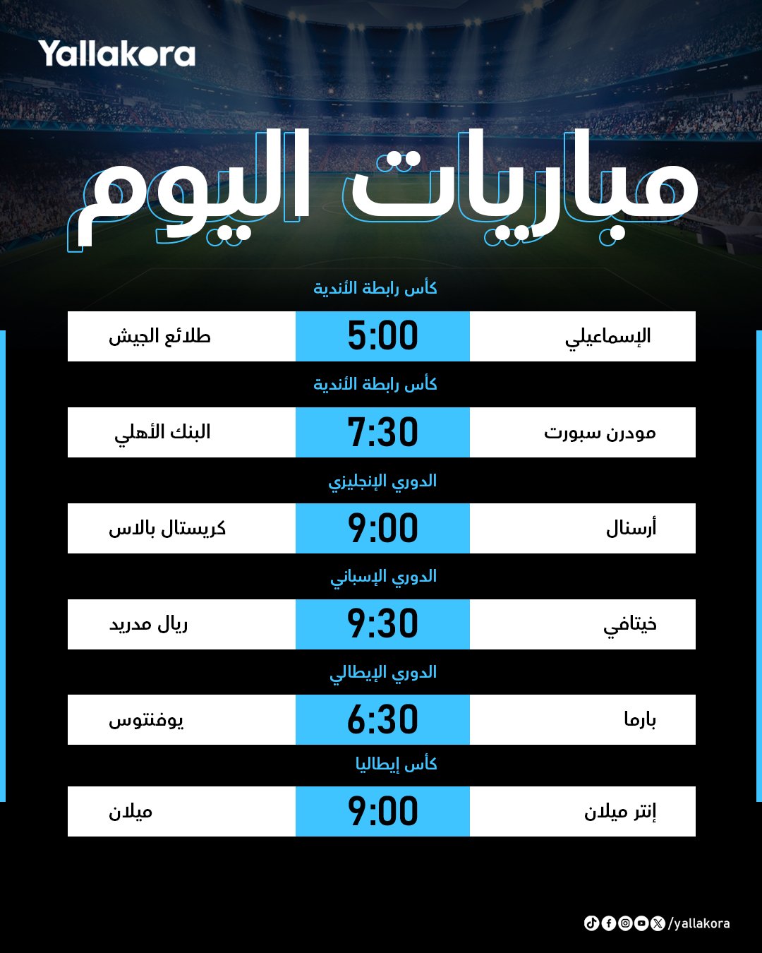 مباريات الأربعاء. ربع نهائي كأس رابطة الأندية. وريال مدريد في مواجهة خيتافي. وموقعة نارية في كأس إيطاليا