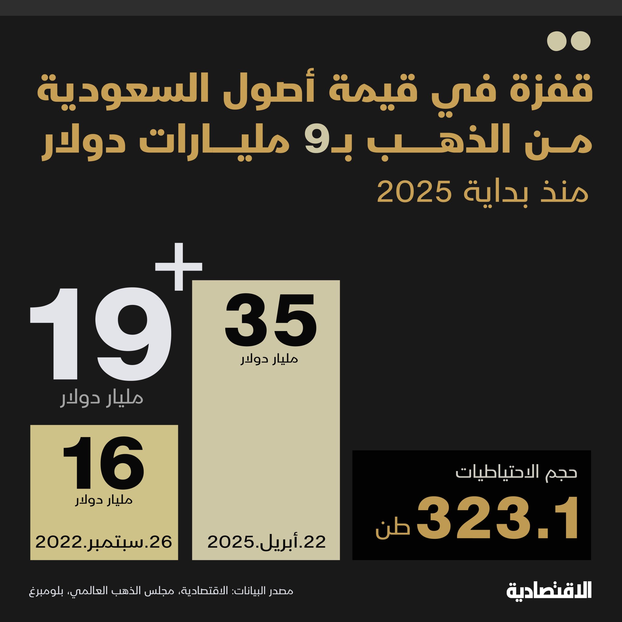 وفق وحدة التحليل المالي في صحيفة الاقتصادية، قفزت قيمة احتياطيات البنك المركزي السعودي من الذهب البالغة 323.1 طن بنحو 19 مليار دولار، لتصل إلى 35 مليار دولار.