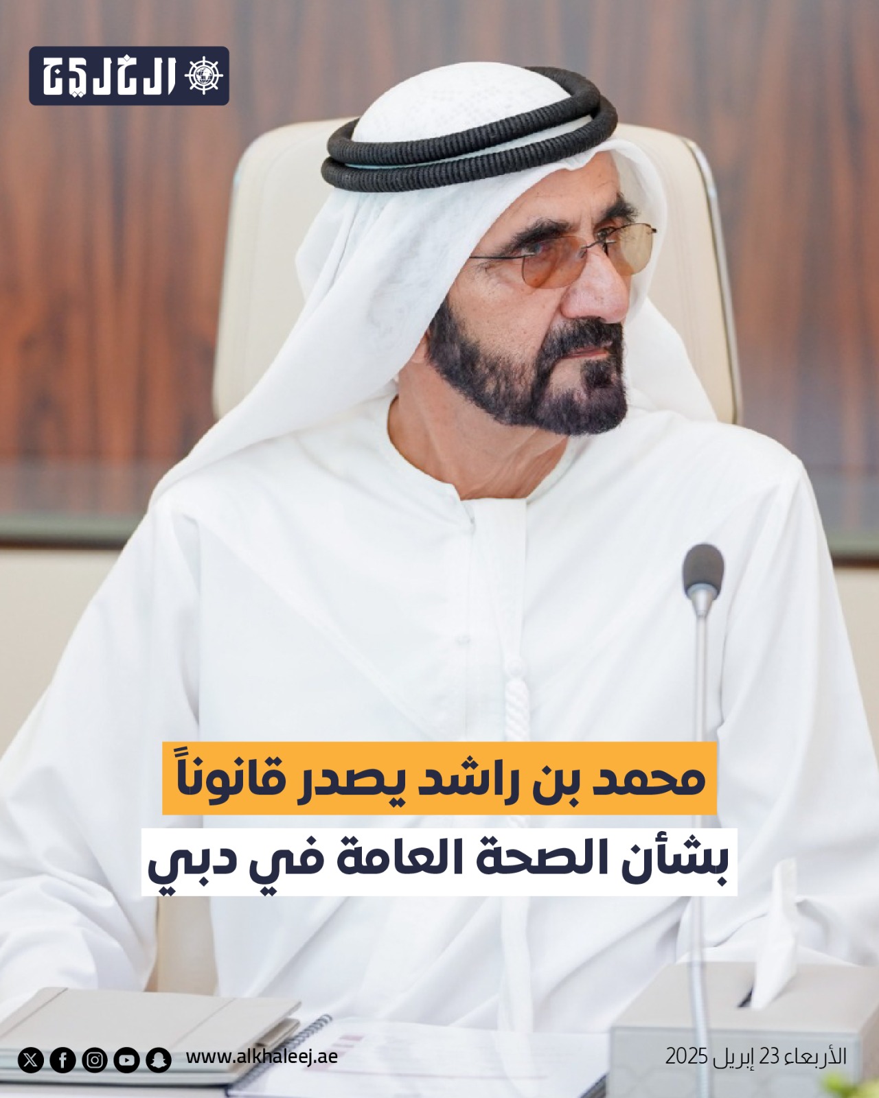أصدر صاحب السمو الشيخ محمد بن راشد آل مكتوم نائب رئيس الدولة رئيس مجلس الوزراء حاكم دبي «رعاه الله»، قانوناً بشأن الصِّحة العامة في إمارة دبي بهدف تعزيز التنسيق والتعاون على جميع المُستويات وتوفير الظروف المُؤدّية إلى الحفاظ على صحة الإنسان والمجتمع والصحة البيئية.