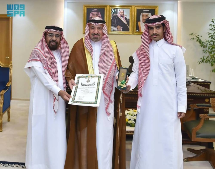 سلّم صاحب السمو الأمير جلوي بن عبدالعزيز بن مساعد أمير منطقة نجران، بمكتبه اليوم، الشاب سالم بن حسن الصيعري، وسام الملك عبدالعزيز من الدرجة الثالثة، لتبرعه لوالده بكليته.