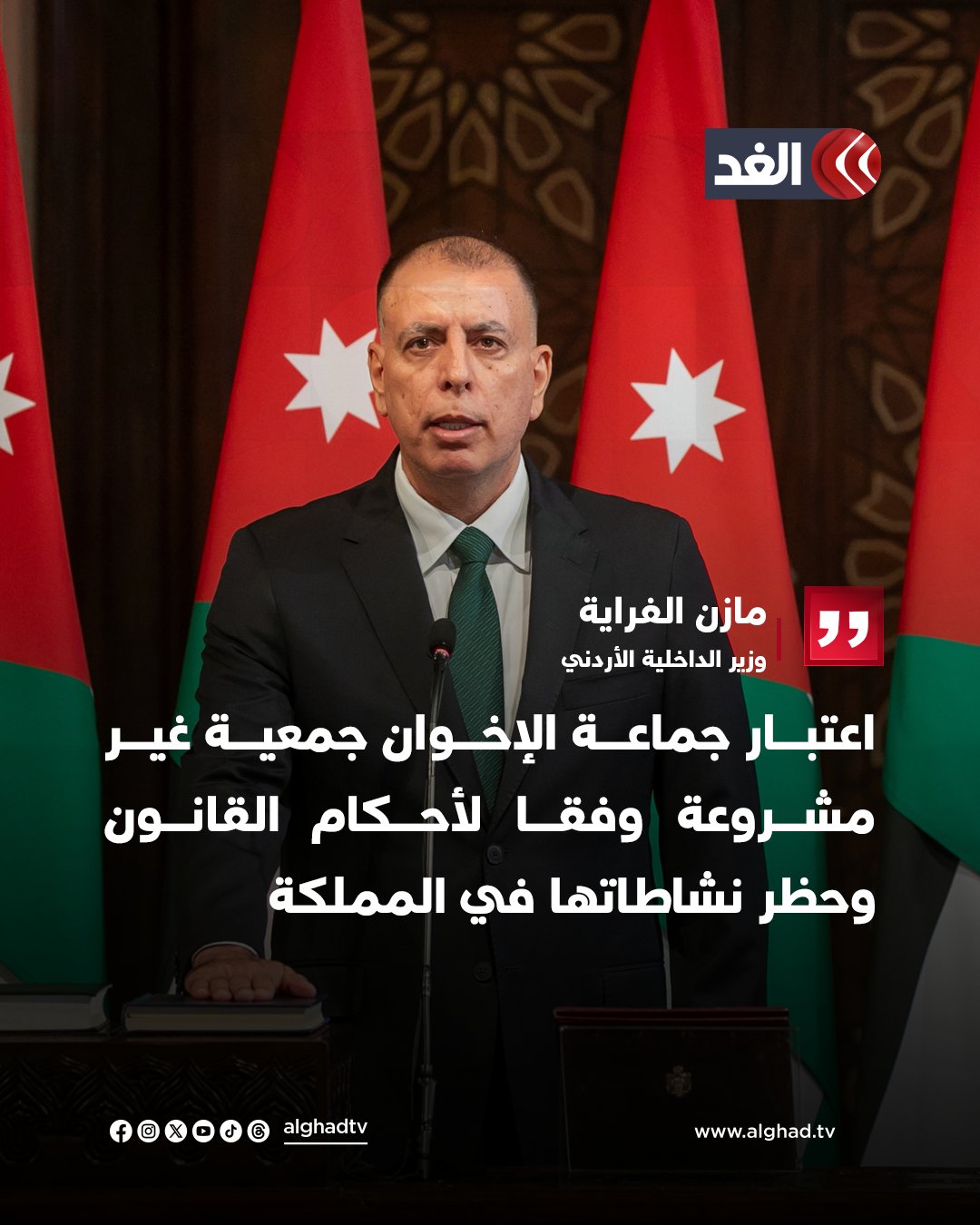 حظر جماعة الإخوان ومصادرة كل ممتلكاتها.. قرارات عاجلة من وزير الداخلية الأردني بشأن الأحداث التخريبية في المملكة