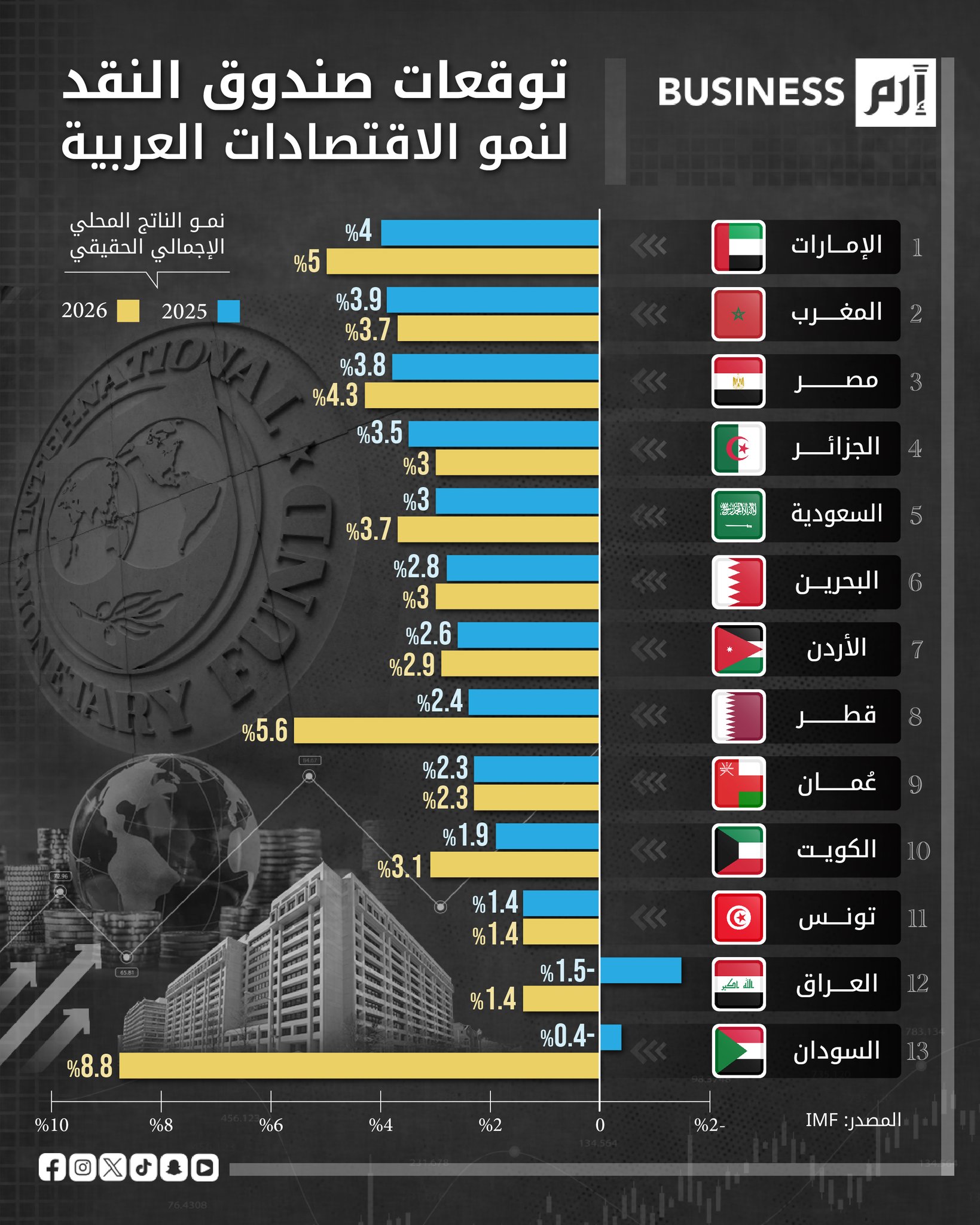 توقعات صندوق النقد لنمو الاقتصادات العربية