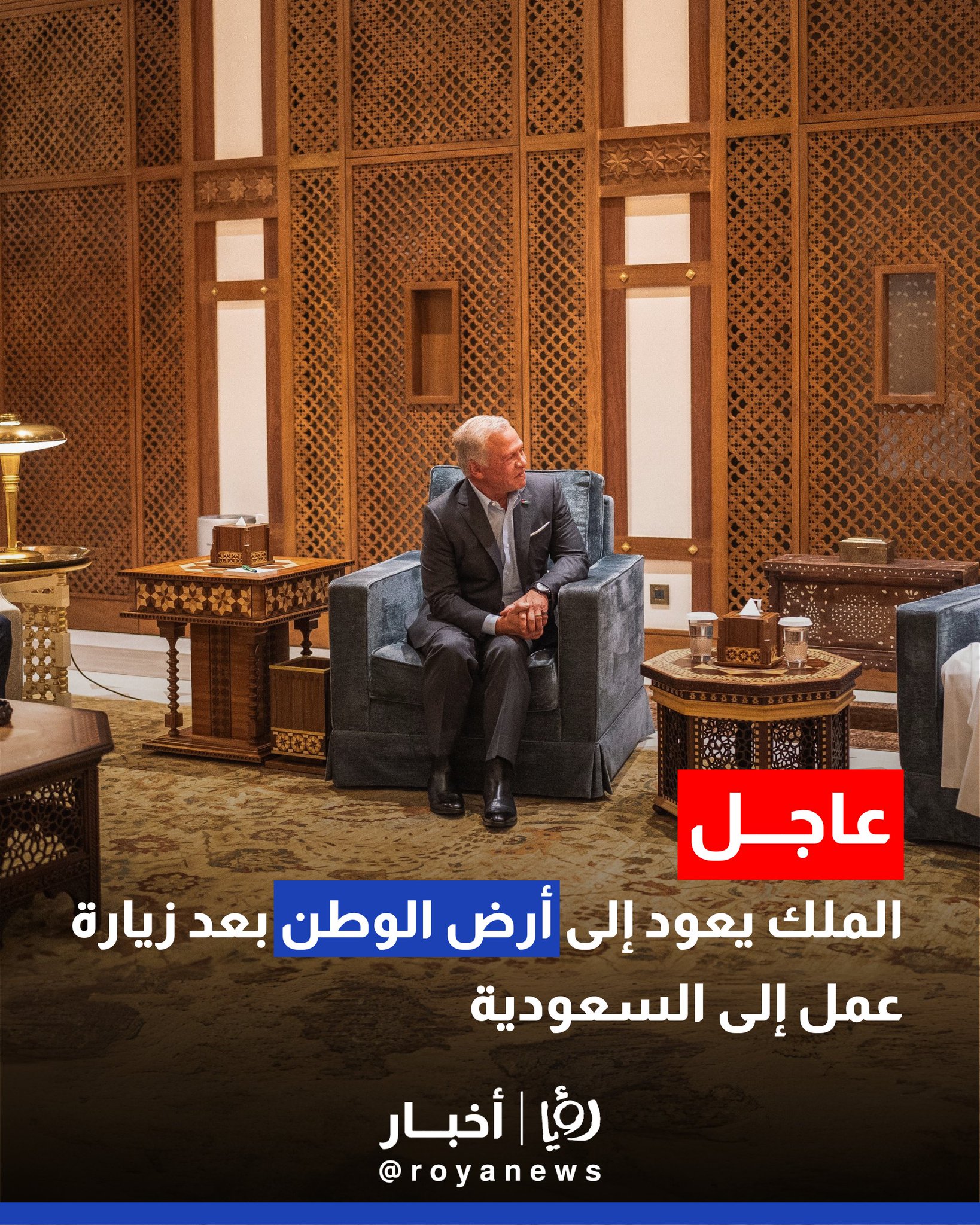 عاد جلالة الملك عبدالله الثاني إلى أرض الوطن بعد زيارة عمل إلى المملكة العربية السعودية.
