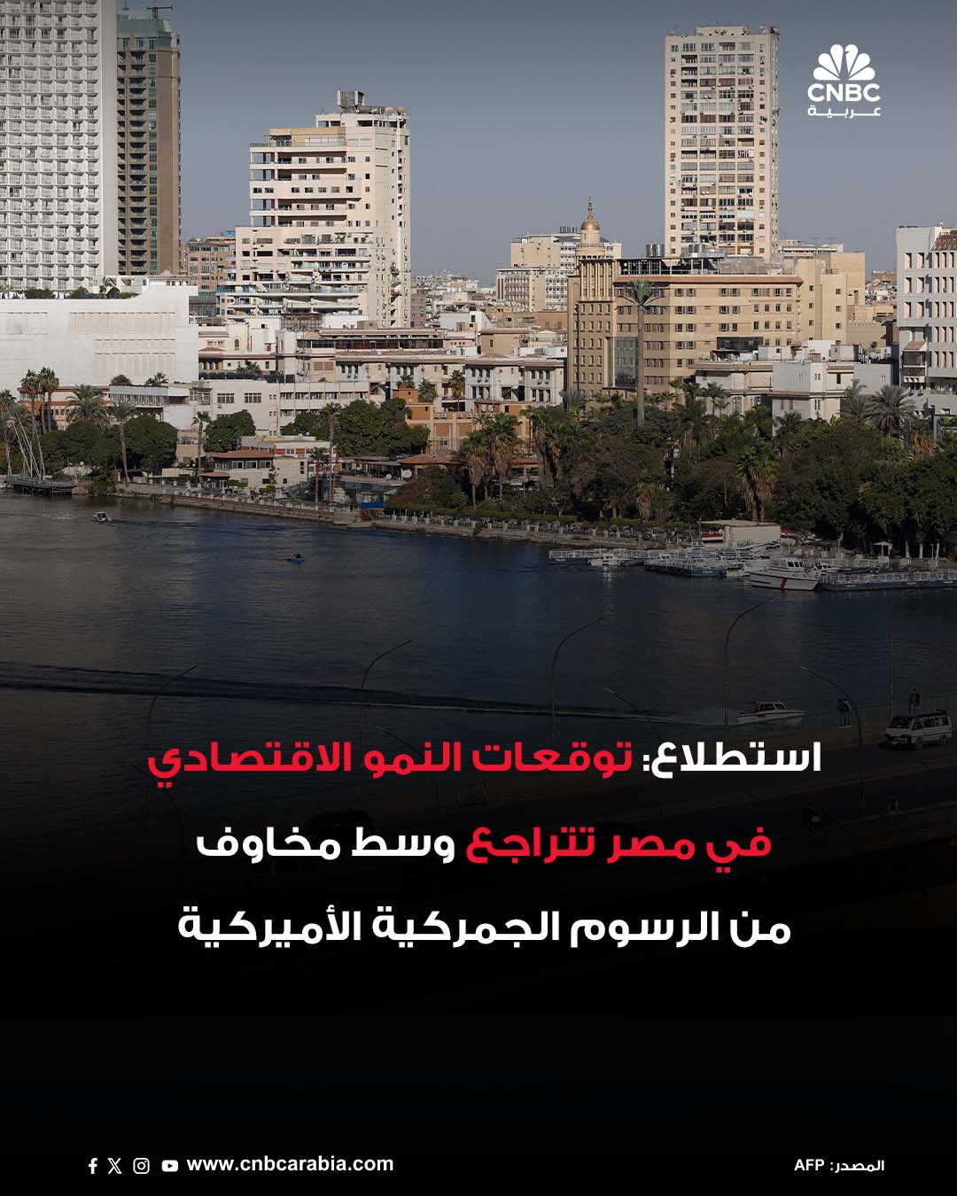 أظهر استطلاع أجرته رويترز اليوم الأربعاء أن خبراء الاقتصاد خفضوا توقعاتهم للنمو الاقتصادي في مصر العامين الحالي والمقبل، مرجعين ذلك لأسباب منها الرسوم الجمركية الأمريكية وتوقعات تباطؤ النمو العالمي. من المتوقع أن ينمو الناتج المحلي الإجمالي 4.6%في السنة المالية 2026/2025، بانخفاض عن 4.7% المتوقعة في يناير كانون الثاني، على أن ينمو بنحو 3.8% في السنة المالية الحالية التي تنتهي في 30 يونيو، بانخفاض عن 4% المتوقعة في استطلاع مماثل أُجري في يناير
