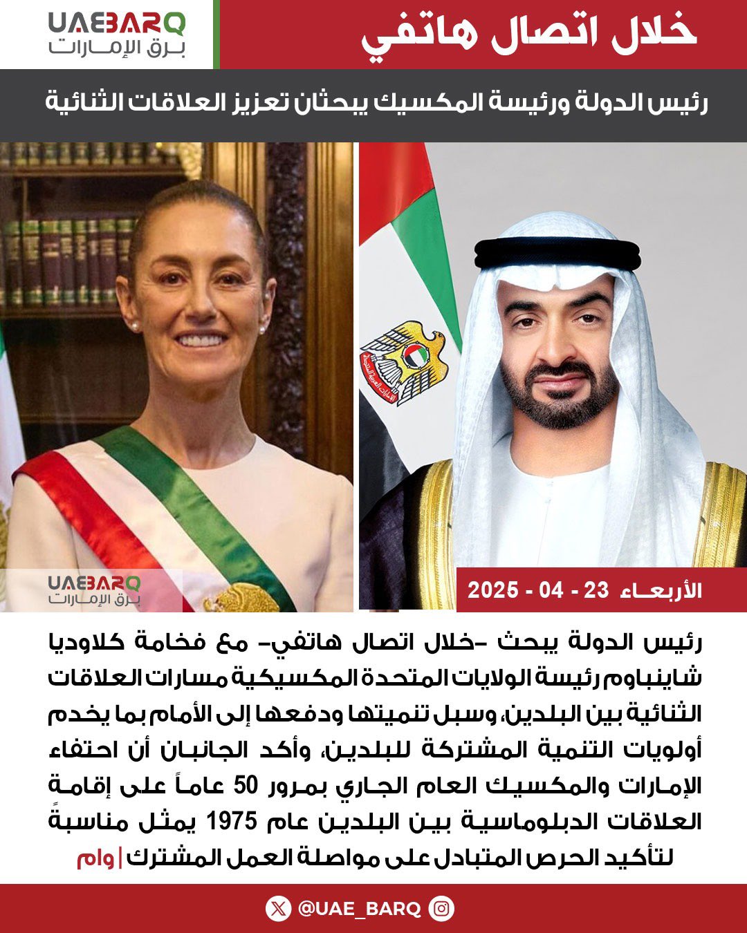 رئيس الدولة ورئيسة المكسيك يبحثان تعزيز العلاقات الثنائية | وام