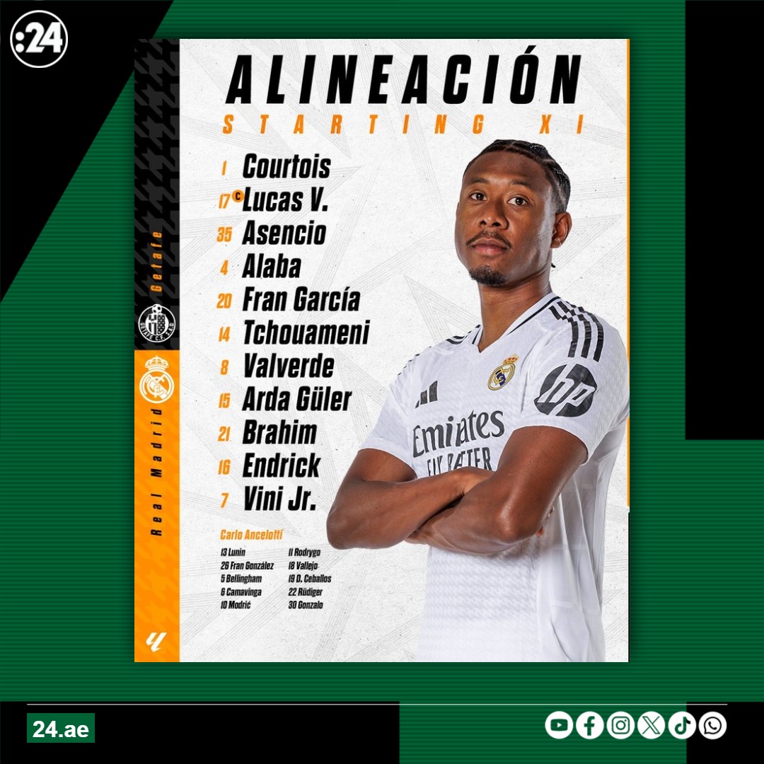 تشكيل ريال مدريد أمام خيتافي في الجولة 33 من الدوري الإسباني. مباراة الذهاب انتهت بفوز "الملكي" بثنائية نظيفة. الريال في وصافة الترتيب برصيد 69 نقطة وخيتافي في المركز ال13 برصيد 39 نقطة #ريال_مدريد_خيتافي