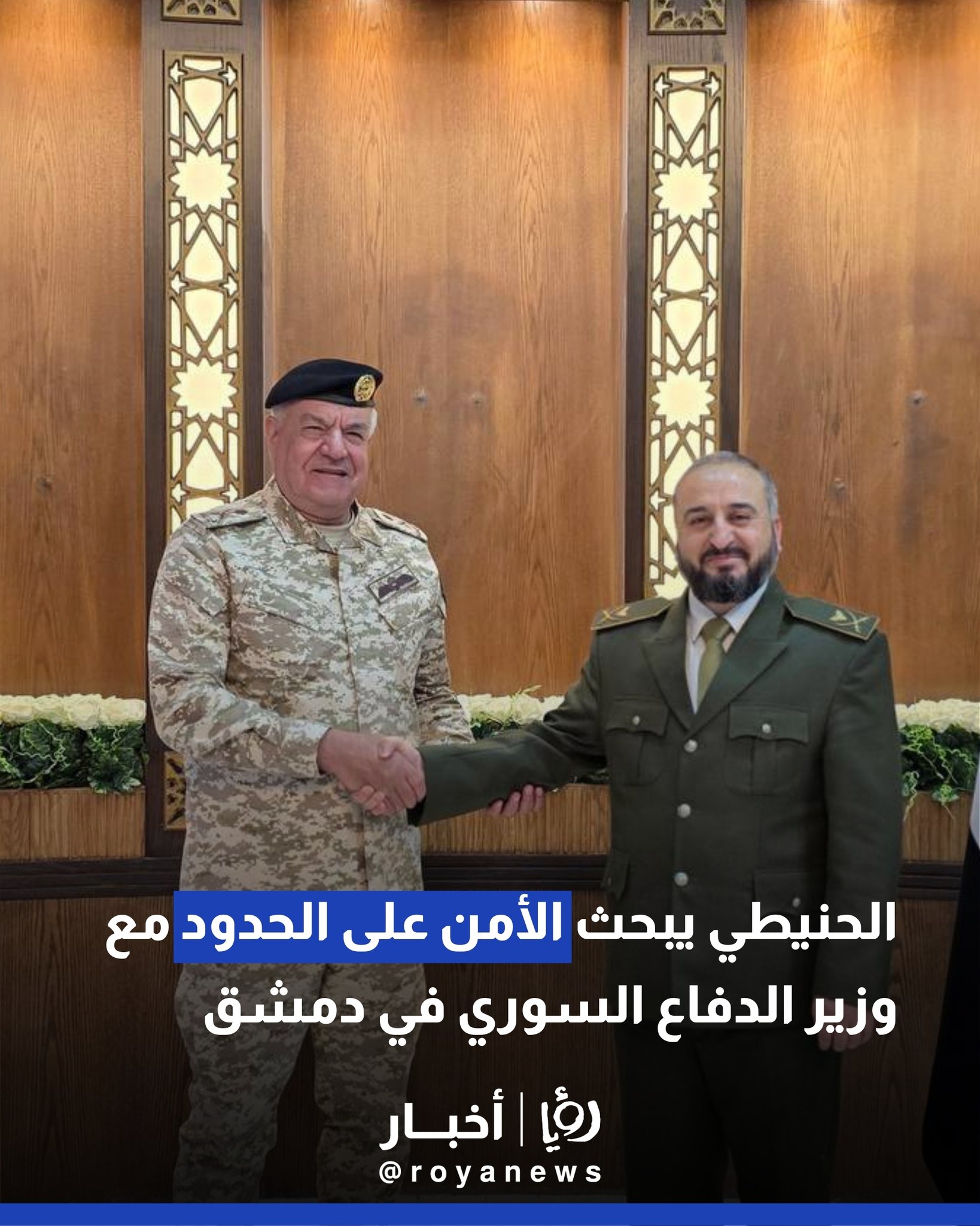 التقى رئيس هيئة الأركان المشتركة اللواء الركن يوسف أحمد الحنيطي الأربعاء، في العاصمة السورية دمشق، وزير الدفاع السوري مرهف أبو قصرة.