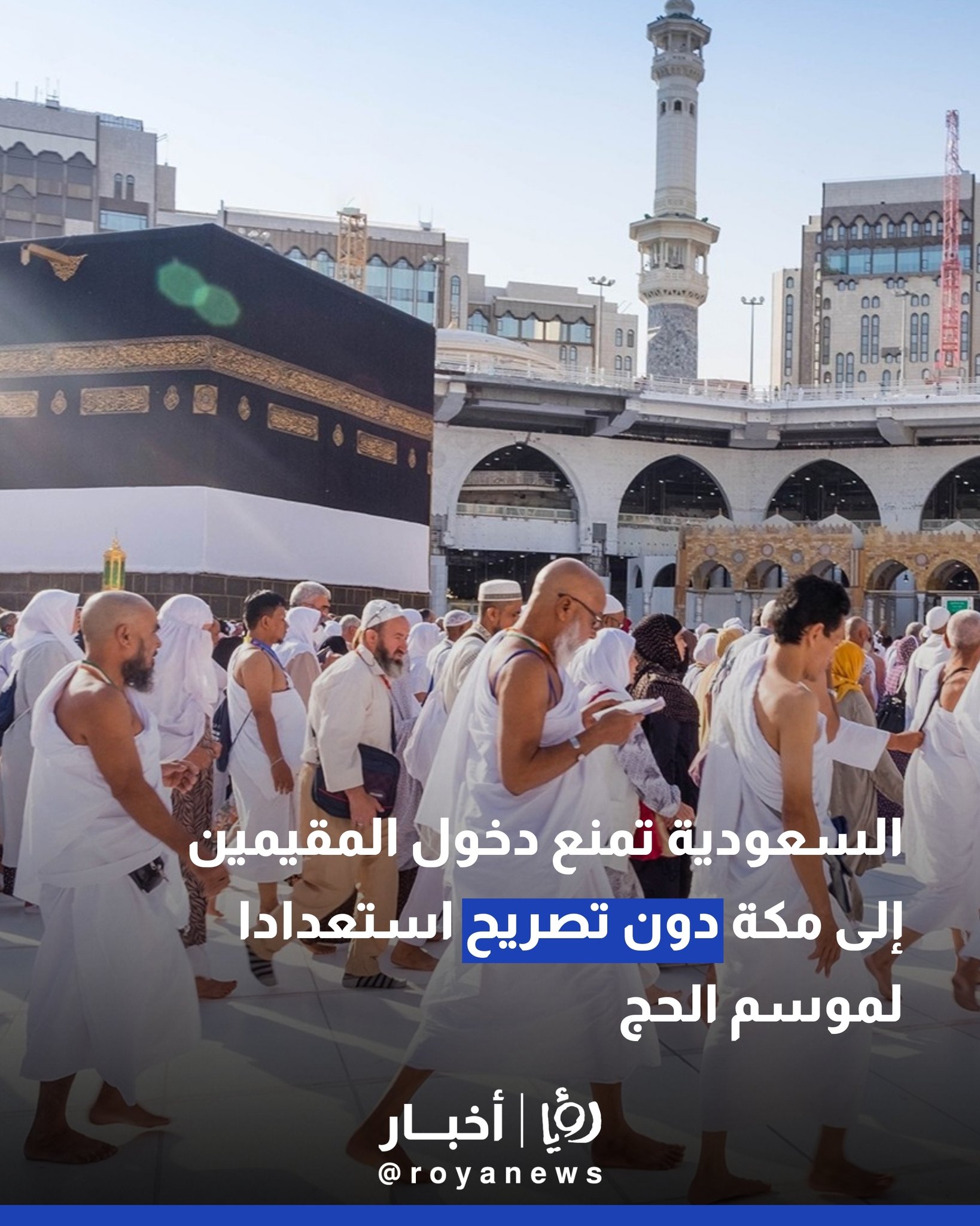 أعلن الأمن العام السعودي، الأربعاء، بدء تنفيذ قرار منع دخول المقيمين إلى مكة المكرمة دون تصريح، اعتبارًا من 23 نيسان/أبريل، في إطار الإجراءات التنظيمية لموسم الحج.