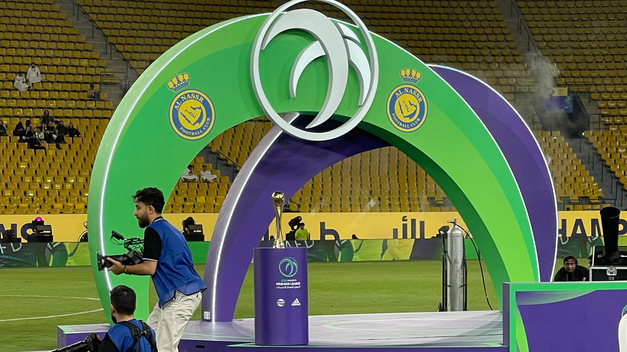 تواجد كأس الدوري الممتاز للسيدات في ملعب الأول بارك، تأهباً لتتويج فريق النصر بلقبه الثالث على التوالي بعد نهاية مواجهته أمام #الترجي