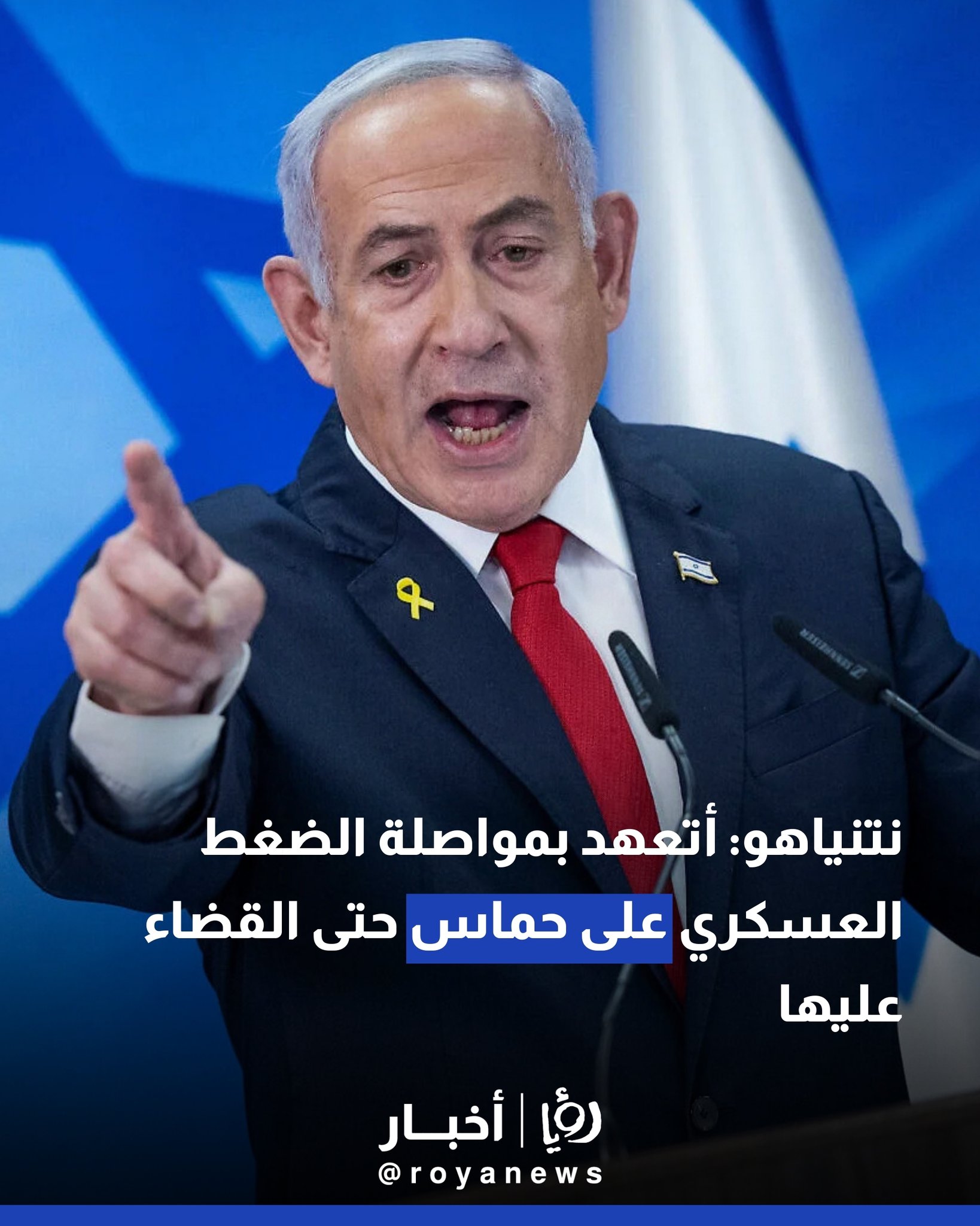 نتنياهو: أتعهد بمواصلة الضغط العسكري على حماس حتى القضاء عليها