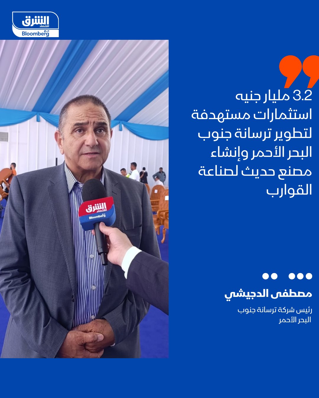 رئيس شركة ترسانة جنوب البحر الأحمر، مصطفى الدجيشي ل"الشرق": 3.2 مليار جنيه استثمارات مستهدفة لتطوير ترسانة جنوب البحر الأحمر وإنشاء مصنع حديث لصناعة القوارب، من بينها ملياري جنيه مخصصة لتحديث وتوسعة الترسانة. نعتمد على التمويل الذاتي في تنفيذ خطة التطوير تجنبا لارتفاع تكلفة القروض #اقتصاد_الشرق