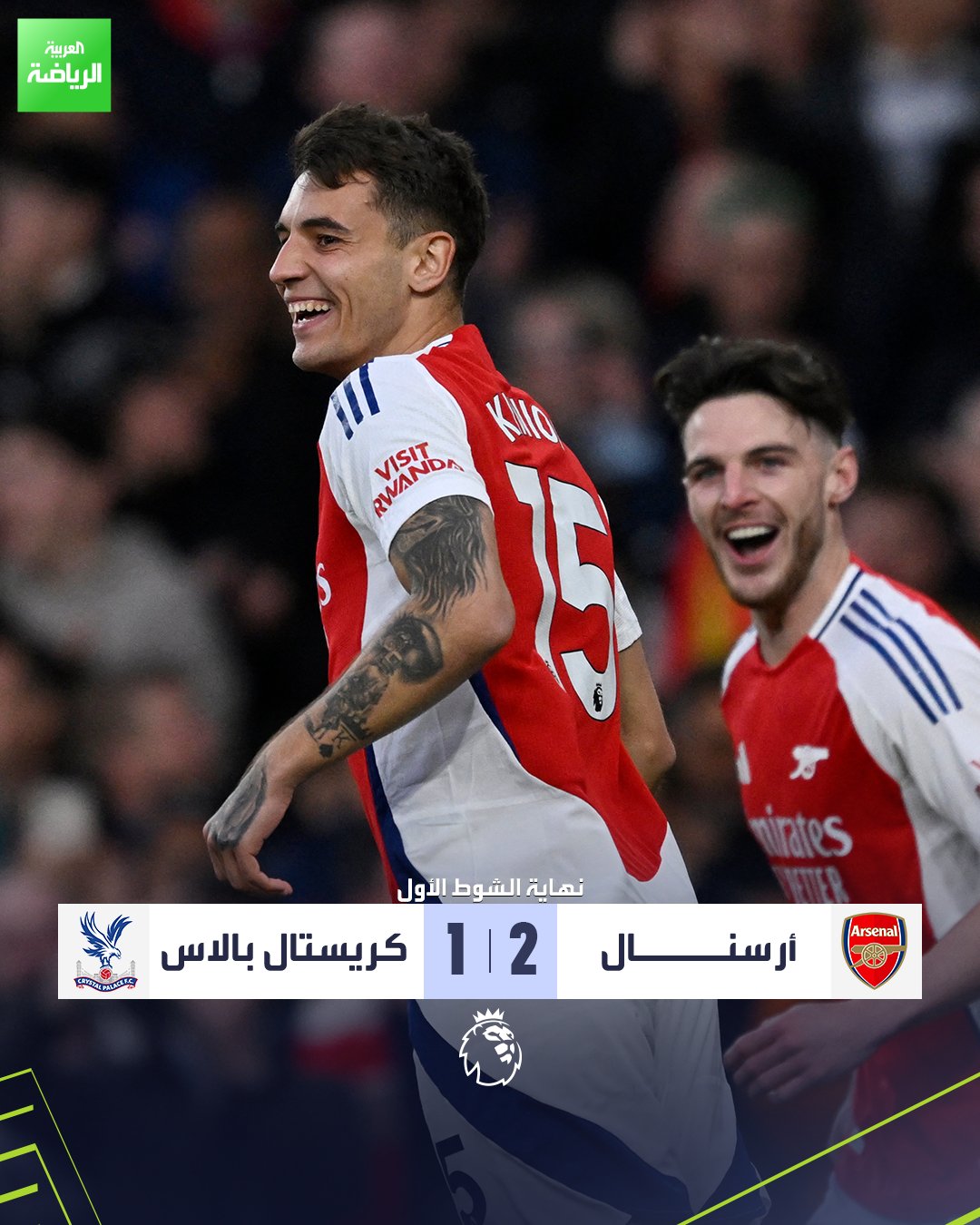 أرسنال يتقدم أمام كريستال بالاس بهدفين مقابل هدف في شوط أول مثير. أرسنال 2 (كيويور، تروسارد) كريستال بالاس 1 (إيز) الدوري الإنجليزي الإمارات _رياضة