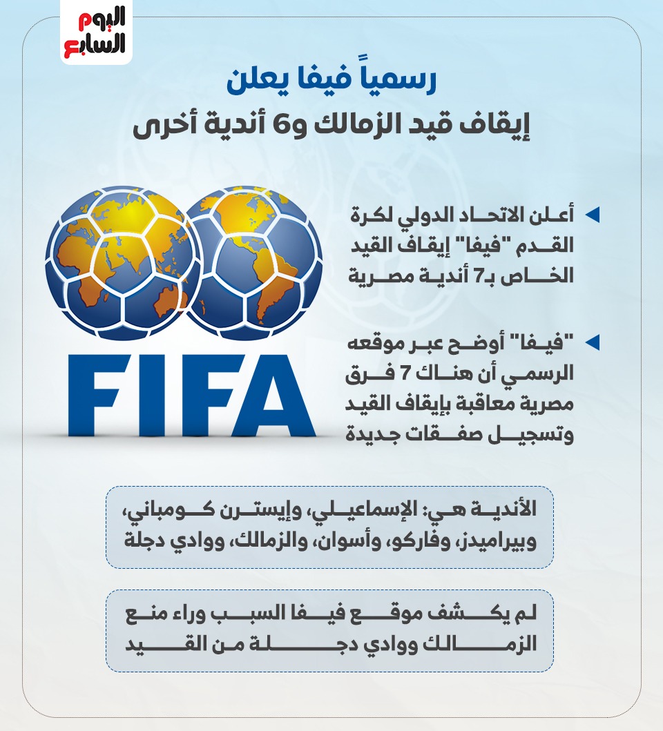 رسمياً.. فيفا يعلن إيقاف قيد الزمالك و6 أندية أخرى
