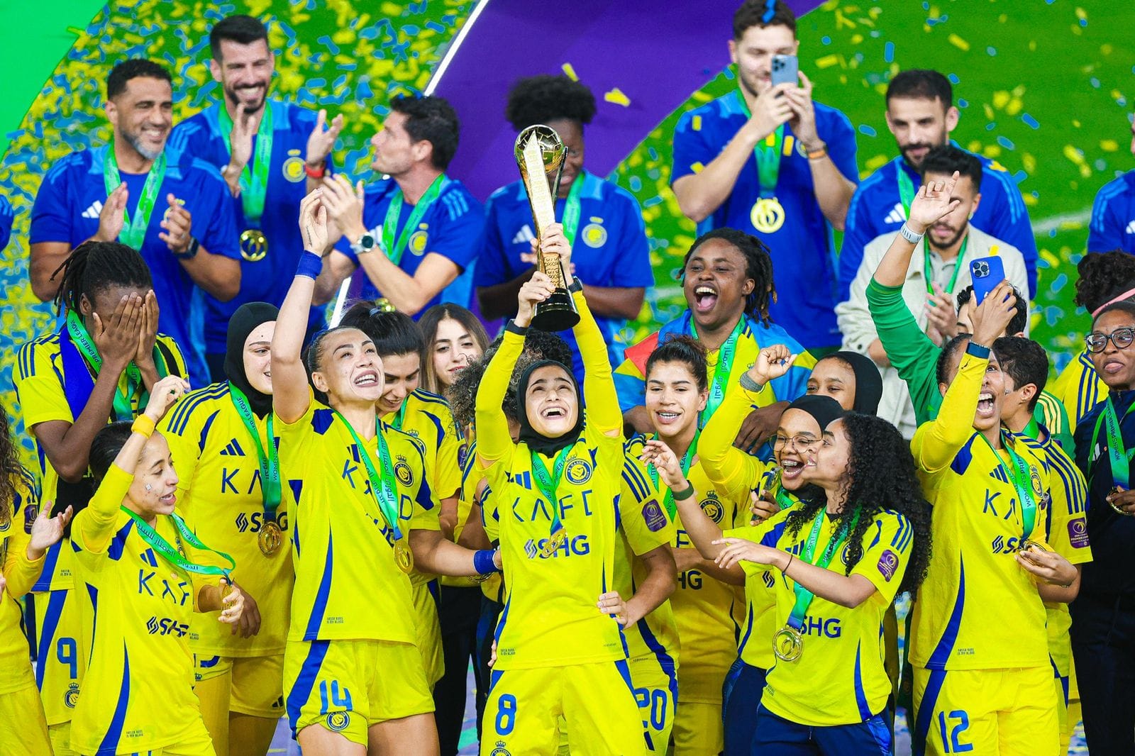 توّج مساعد وزير الرياضة للشؤون الرياضية في وزارة الرياضة، الأستاذة أضواء العريفي، مساء اليوم الأربعاء، نادي النصر ببطولة الدوري الممتاز للسيدات لموسم 2024-2025، بعد فوزه على نادي الترجي، في المباراة التي أقيمت على ملعب الأول بارك بالرياض.