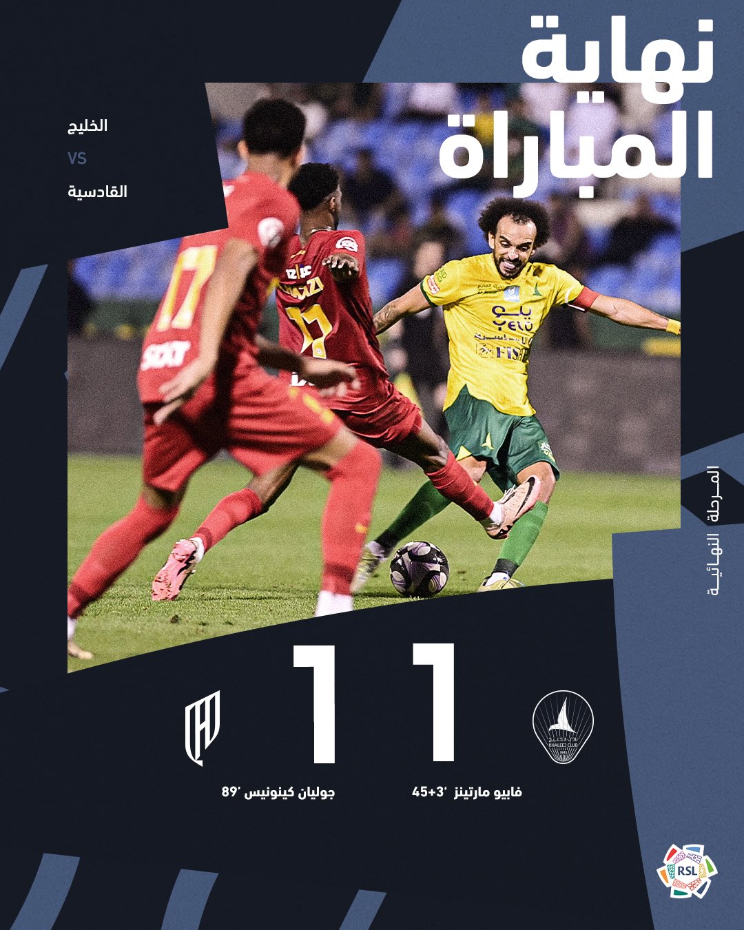 التعادل الإيجابي بهدف لمثله ينهي مواجهة الخليج و القادسية ضمن منافسات الجولة ال 29 من #الدوري_السعودي_للمحترفين.