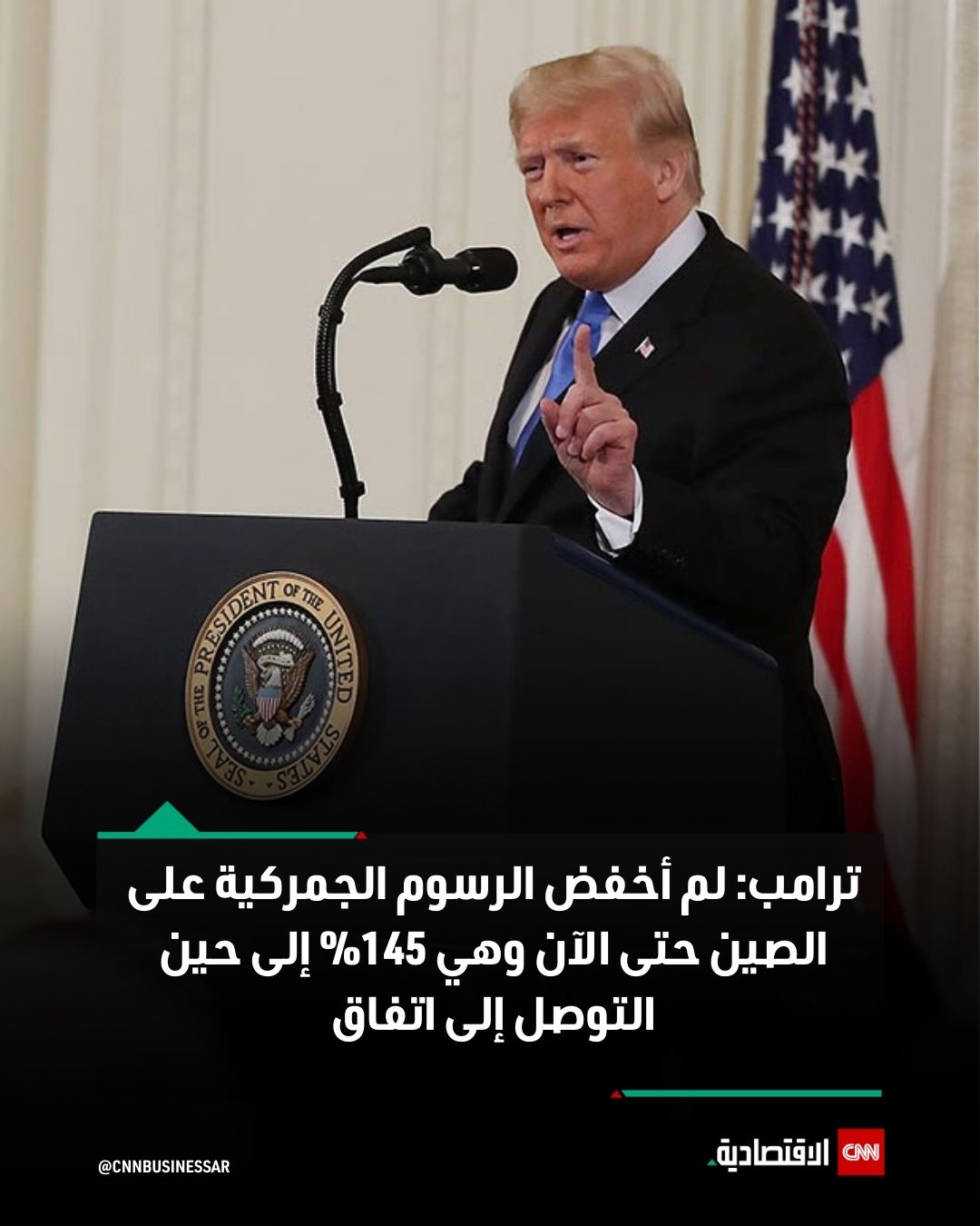عاجل | ترامب: لم أخفض الرسوم الجمركية على الصين حتى الآن وهي 145% إلى حين التوصل إلى اتفاق #العالم_بلغة_الأعمال