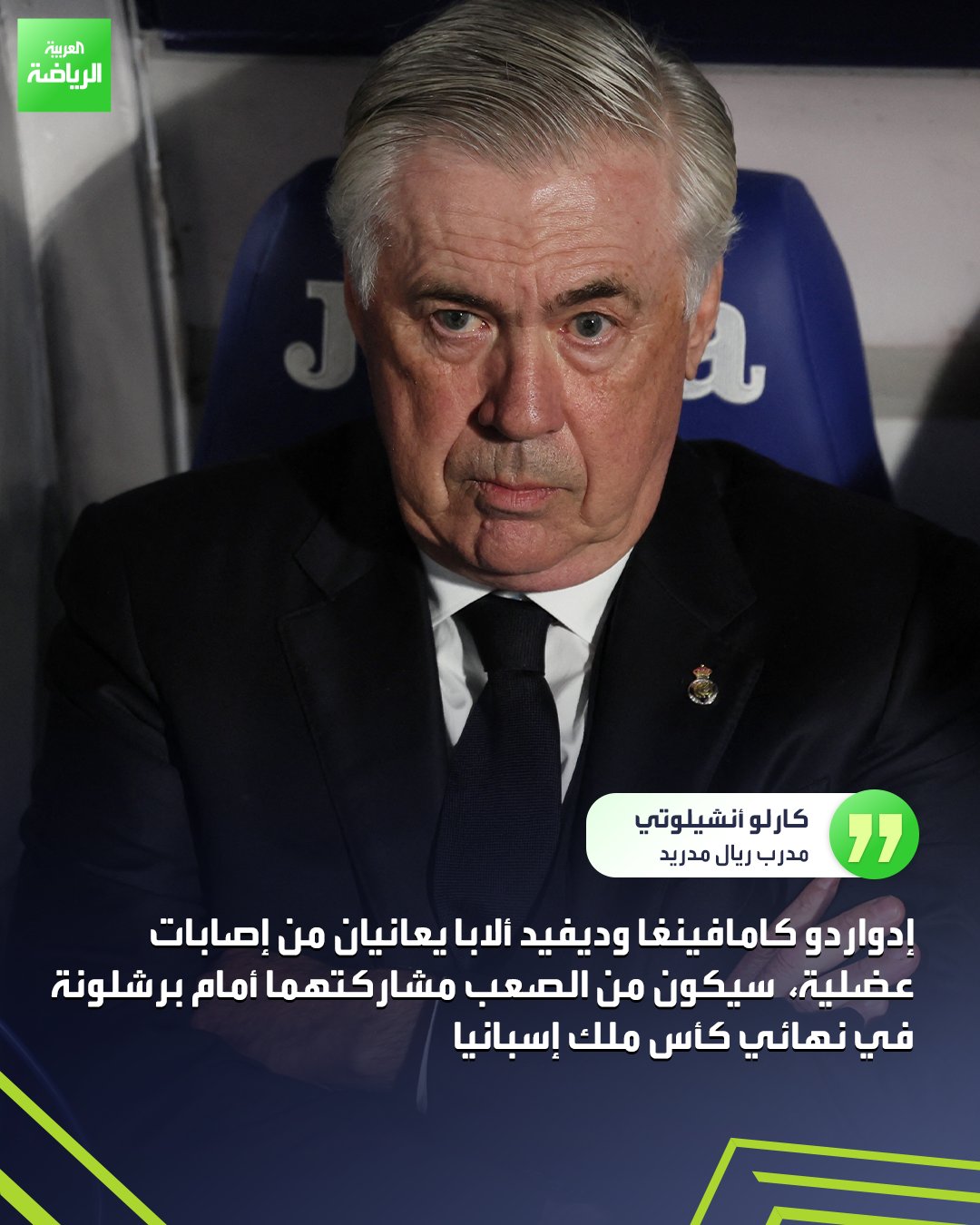 أنشيلوتي في تصريحات بعد مباراة خيتافي: "كامافينغا وألابا سيغيبان عن الكلاسيكو". _رياضة