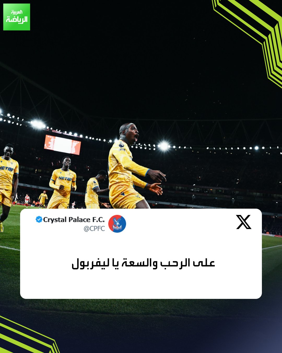نادي كريستال بالاس عبر حسابه الرسمي في منصة إكس بعد تعادله مع أرسنال: "على الرحب والسعة يا ليفربول". _رياضة