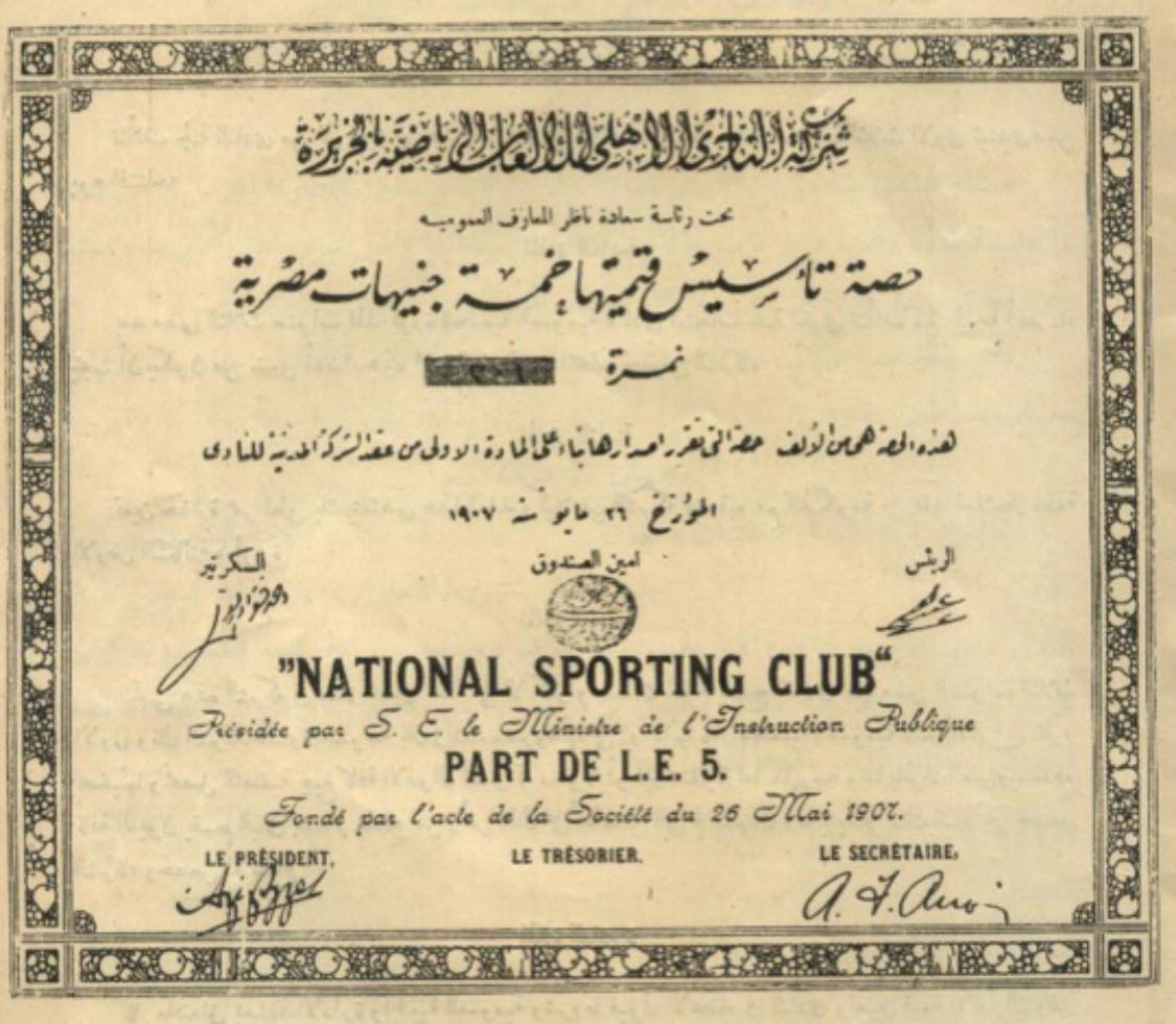 118 سنة أهلي. سندات "شركة النادي الأهلي للألعاب الرياضية".. طُرحت بعد شهر تقريبا من إعلان تأسيس النادي في 26 مايو 1907