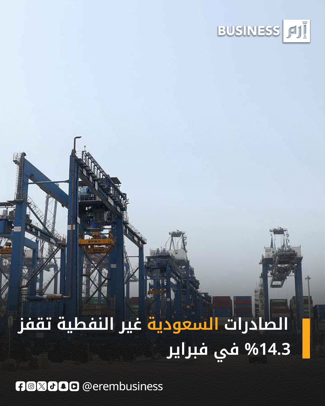 أظهرت بيانات الهيئة العامة للإحصاء في السعودية، تسجيل الصادرات غير البترولية، شاملة إعادة التصدير، ارتفاعاً بنسبة 14.3% إلى 6.9 مليار دولار في فبراير 2025، مقارنة بنفس الفترة من العام الماضي