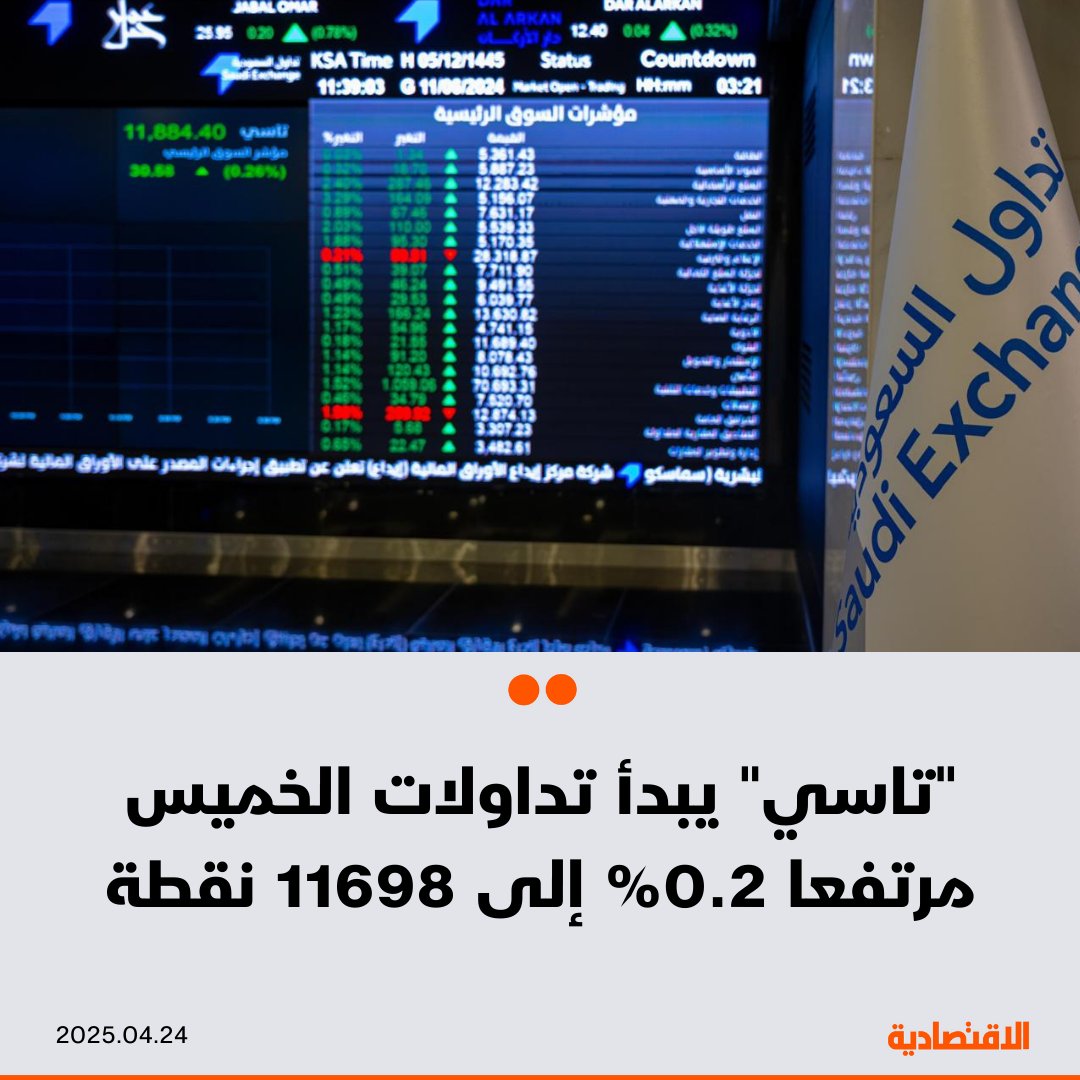 الأسهم السعودية ترتفع 0.2% مطلع تداولات اليوم الخميس ليصل المؤشر الرئيسي تاسي إلى مستوى 11698 نقطة بدعم من معظم الشركات على رأسها مصرف الراجحي، فيما بلغت قيم التداول 203 ملايين ريال