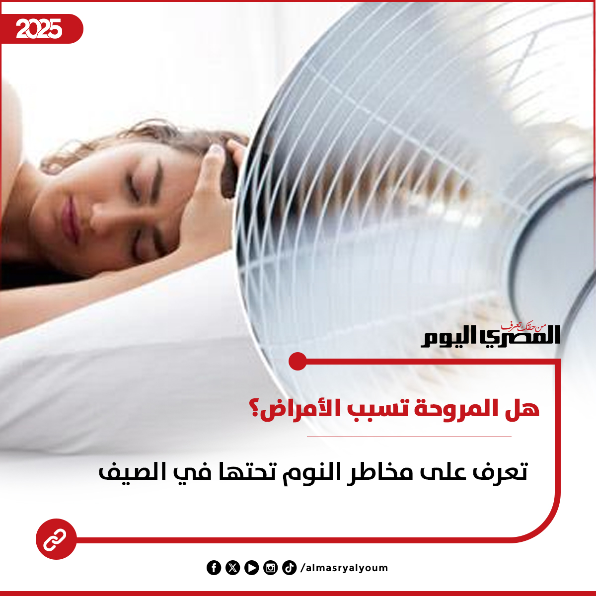 عبر هذا التقرير التالي تسلط «المصري اليوم» الضوء على هذه الأخطار، ونرصد توصيات الخبراء عن كيفية الاستخدام الآمن للمروحة أثناء النوم.