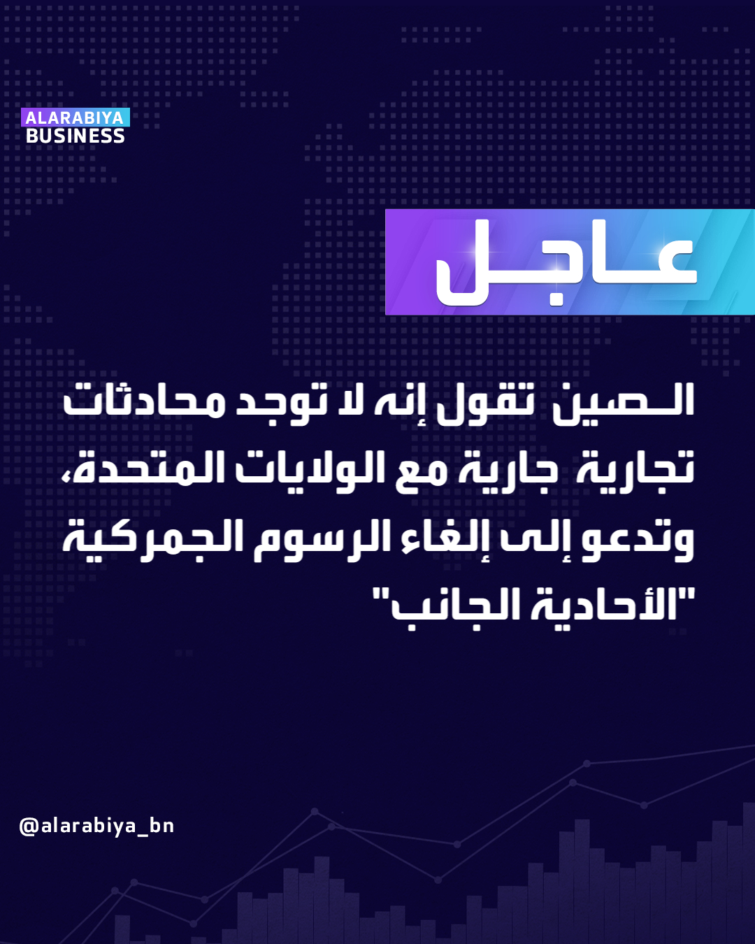 عاجل| الصين تقول إنه لا توجد محادثات تجارية جارية مع الولايات المتحدة، وتدعو إلى إلغاء الرسوم الجمركية "الأحادية الجانب" _Business