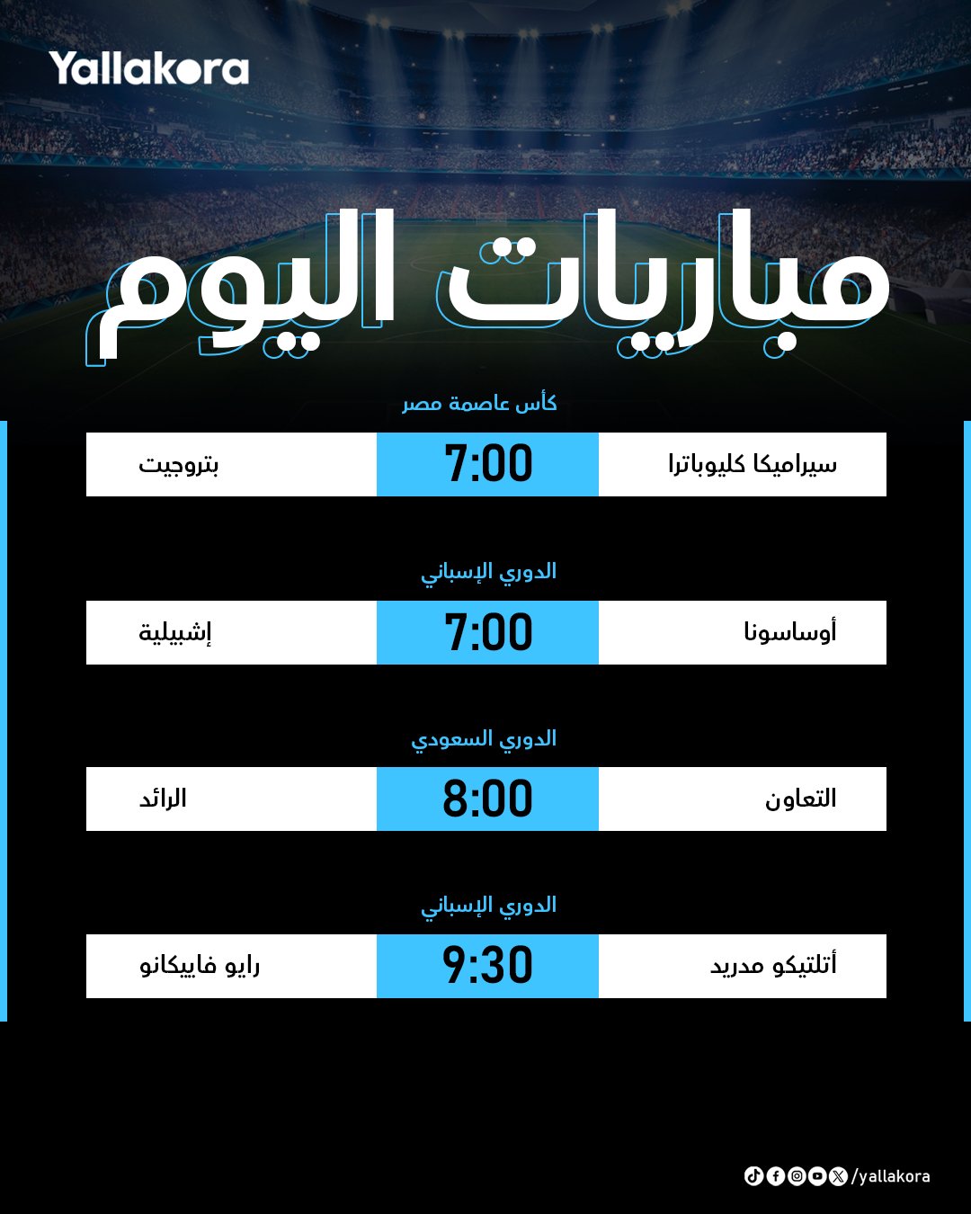 مباريات الخميس. ربع نهائي كأس رابطة الأندية. وأتلتيكو مدريد في مواجهة رايو فاييكانو