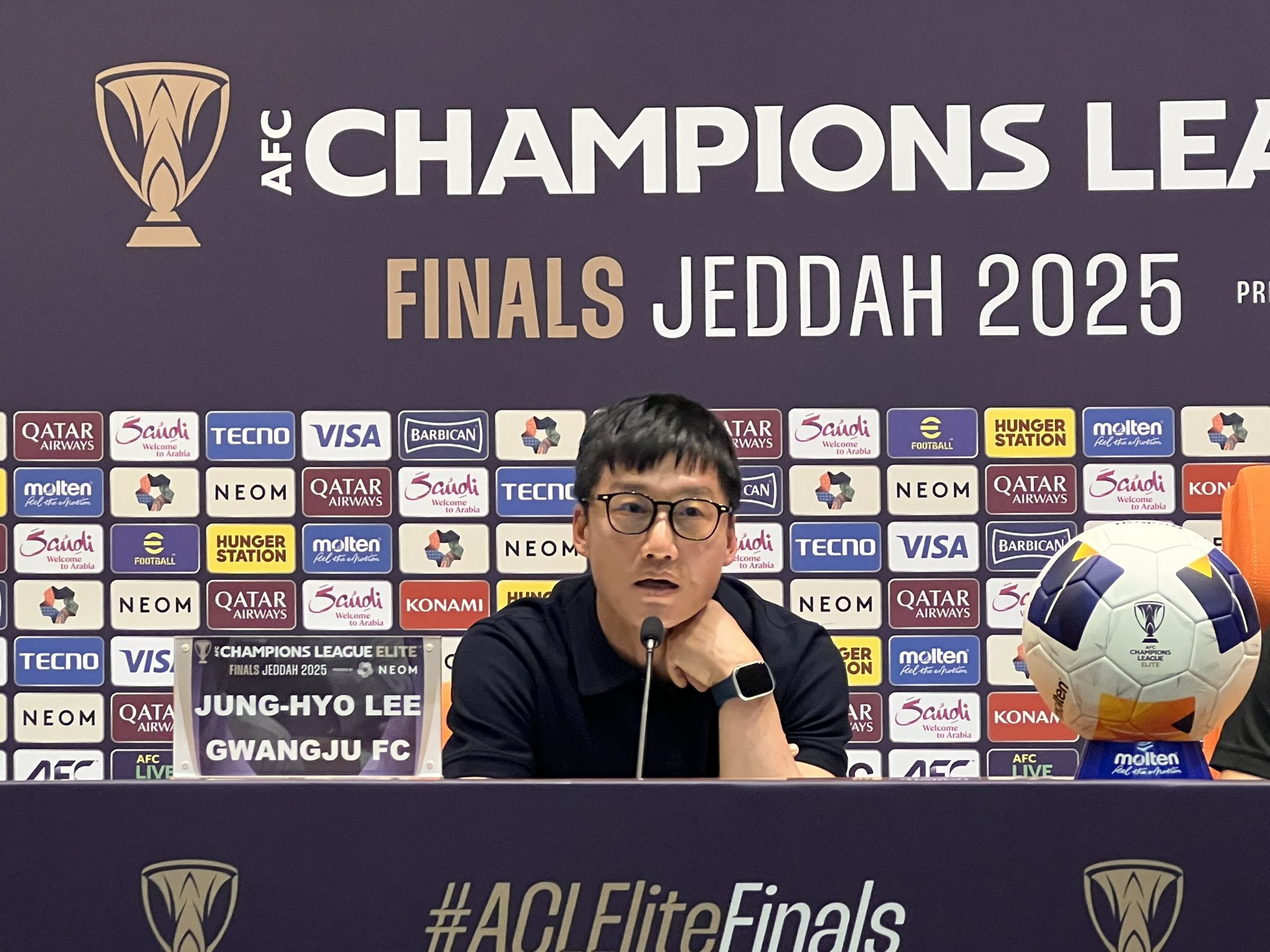 جانغ هيو لي مدرب فريق غوانغجو في المؤتمر الصحافي قبل مواجهة الهلال: -من المتوقع أن نفوز أو نخسر، لكن من المهم كيف الأداء الذي سنقدمه، واللاعبون يطمحون للفوز غداً. #الهلال_غوانغجو