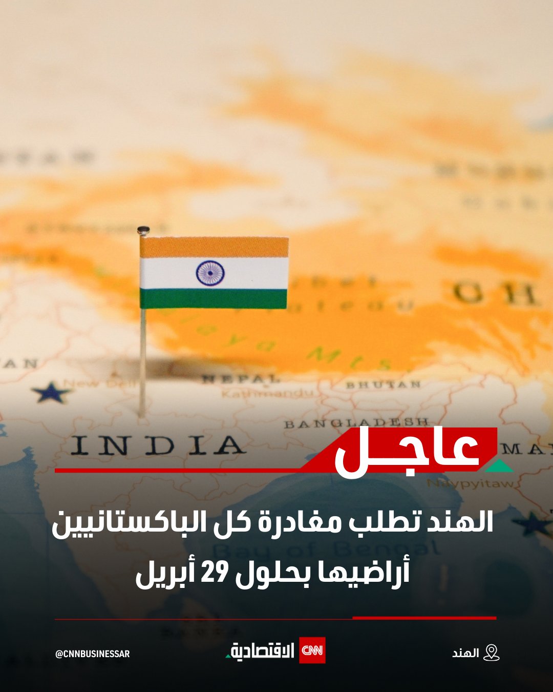 عاجل | الهند تطلب مغادرة كل الباكستانيين أراضيها بحلول 29 أبريل #العالم_بلغة_الأعمال