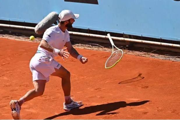 وبعد تأخره بنتيجة 6-3 و3-2، أمس الأربعاء، حطم موتيه مضربه غضباً بعد خسارته نقطة.