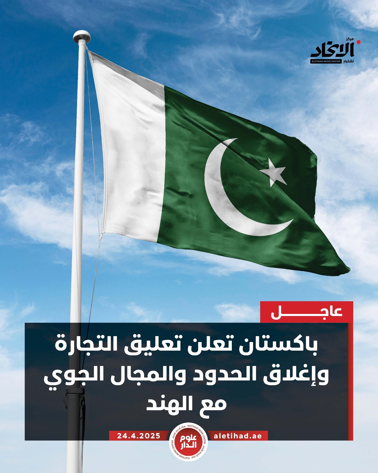 عاجل.. باكستان تعلن تعليق التجارة وإغلاق الحدود والمجال الجوي مع #الهند
