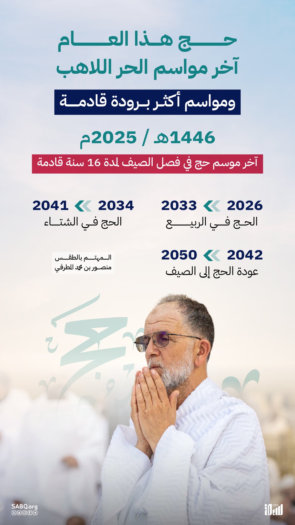 يشهد هذا العام آخر موسم حج صيفي ولمدة 16 عامًا، حيث يتحول 2026 الحج تدريجيًا لفصلي الربيع ثم الشتاء