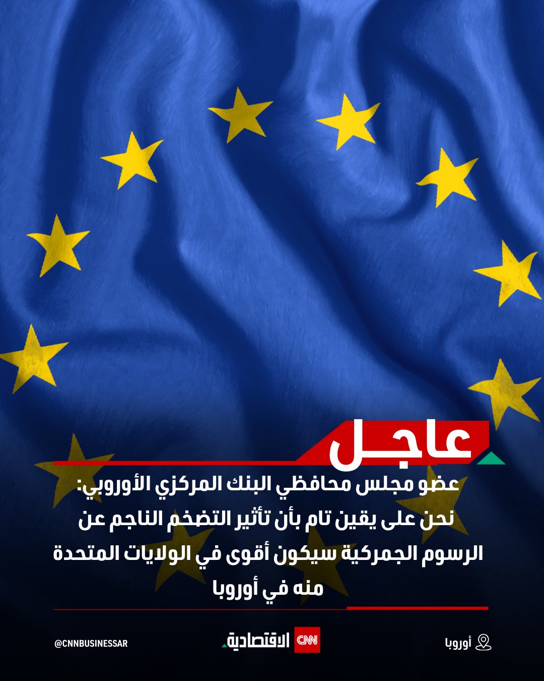 عاجل |عضو مجلس محافظي البنك المركزي الأوروبي: نحن على يقين تام بأن تأثير التضخم الناجم عن الرسوم الجمركية سيكون أقوى في الولايات المتحدة منه في أوروبا #العالم_بلغة_الأعمال