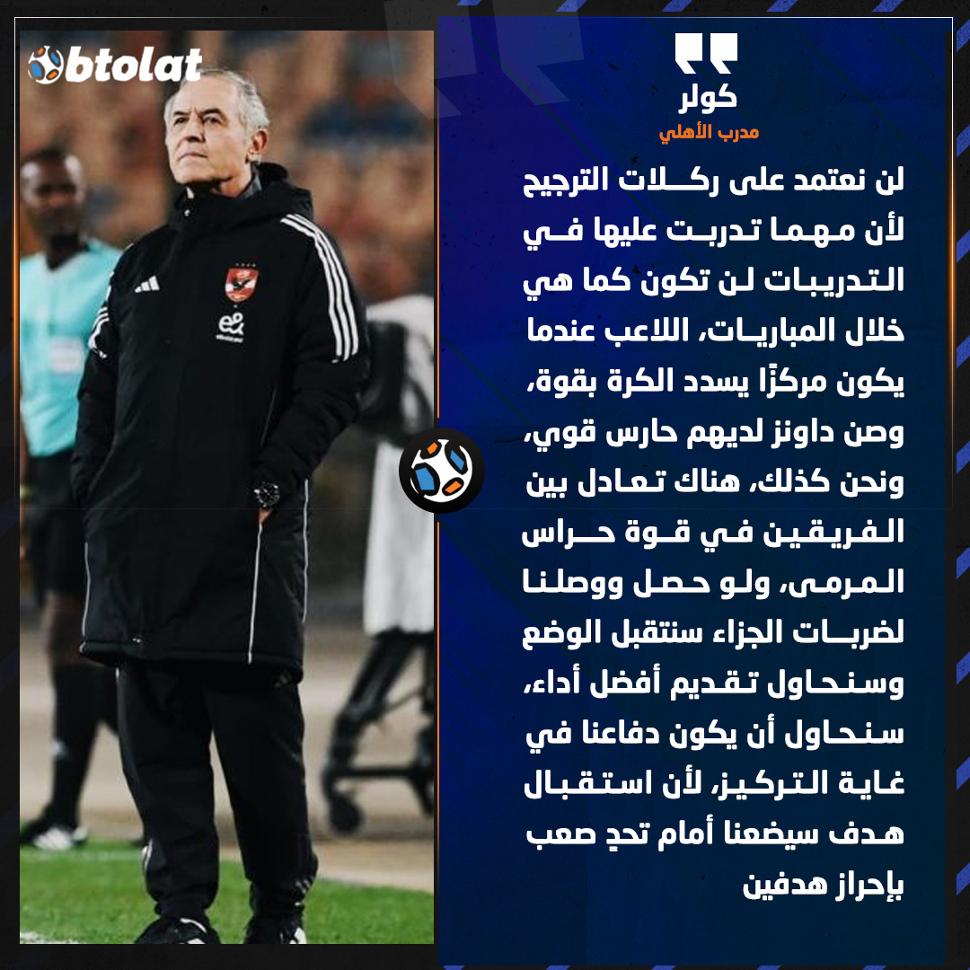 كولر: هناك تعادل بين الفريقين في قوة حراس المرمى، ولو حصل ووصلنا لضربات الجزاء سنتقبل الوضع وسنحاول تقديم أفضل أداء، سنحاول أن يكون دفاعنا في غاية التركيز، لأن استقبال هدف سيضعنا أمام تحدٍ صعب بإحراز هدفين